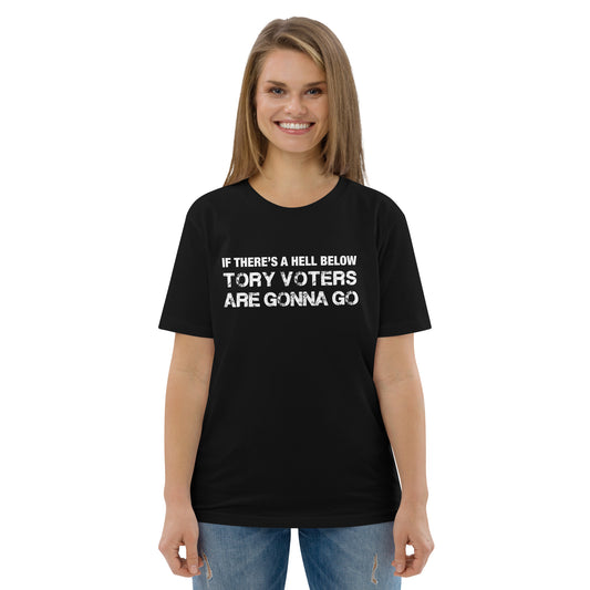 Anti Tory Party TShirt Humorous If There's A Hell Below The Tory Voters Are Gonna Go Unisex Organic Cotton T-Shirt