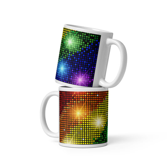 Gay Pride Rainbow Mug Sparkling Mosaic Pattern All-Over Print Glossy Ceramic Mug