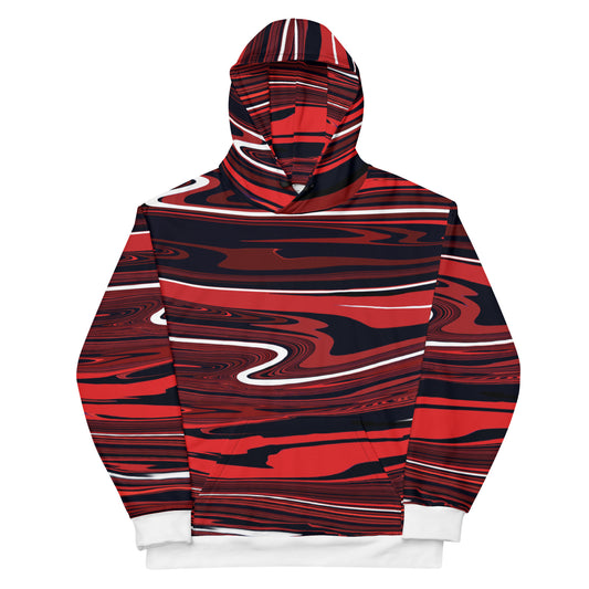Red Hoodie Monochromatic Abstract Striped All-Over Print Unisex Hoodie