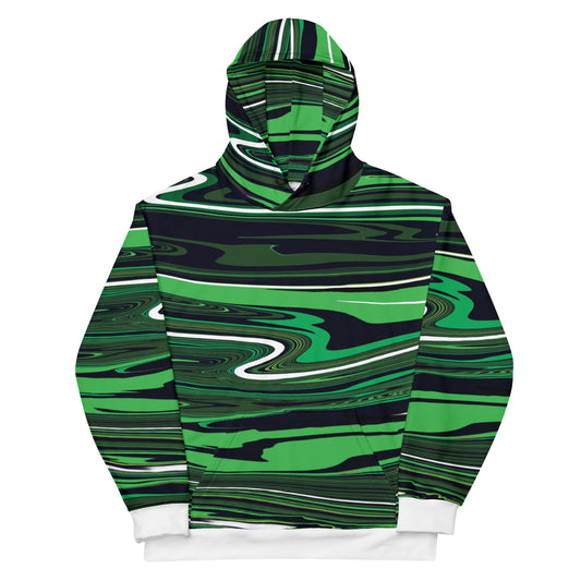Green Hoodie Monochromatic Abstract Striped All-Over Print Unisex Hoodie