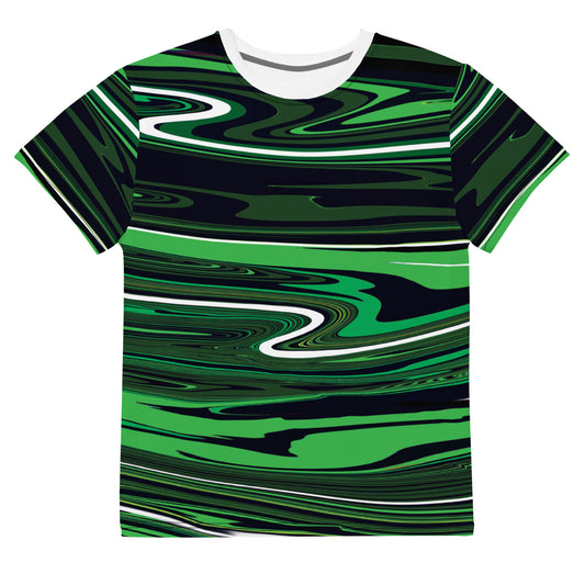 Green Youth TShirt Monochromatic Abstract Striped All Over Print Youth Crew Neck T Shirt