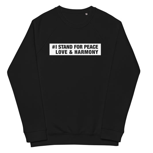 I Stand For Peace Love & Harmony Political Message Unisex Organic Cotton Raglan Sleeve Sweatshirt