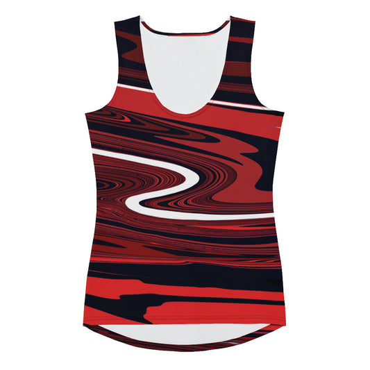 Red Tank Top Monochromatic Abstract Striped All-Over Print Womens Fitted Tank Top