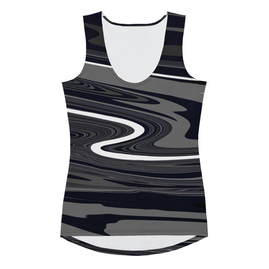 Grey Black Tank Top Monochromatic Abstract Striped All-Over Print Womens Fitted Tank Top