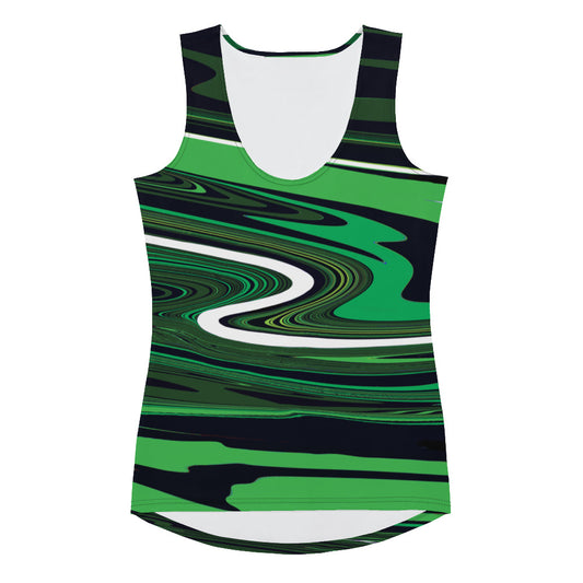 Green Tank Top Monochromatic Abstract Striped All-Over Print Womens Fitted Tank Top