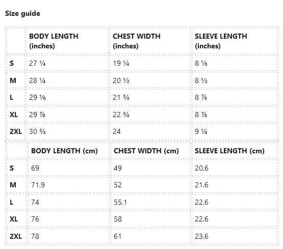 BODY LENGTH (inches) CHEST WIDTH (inches) SLEEVE LENGTH (inches)