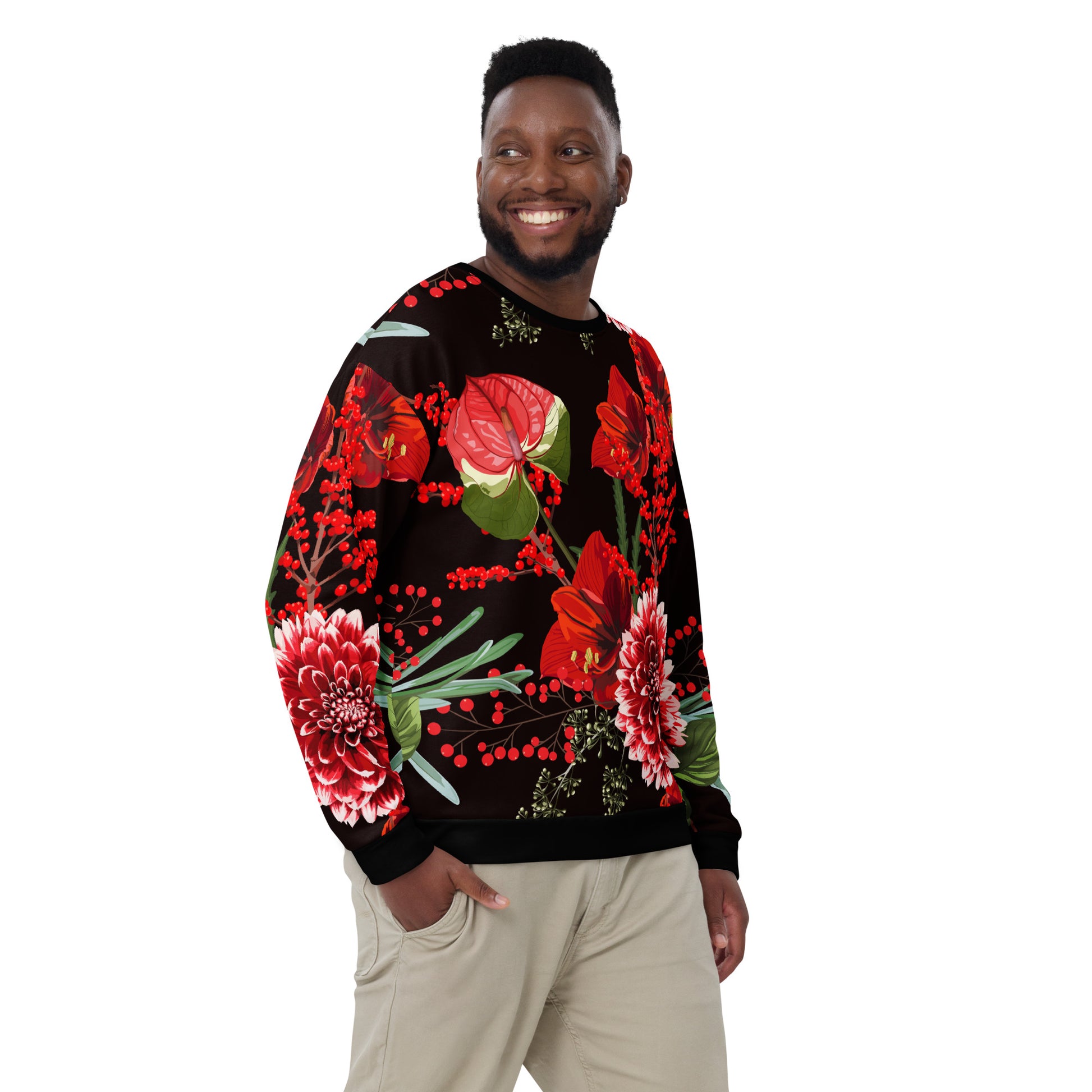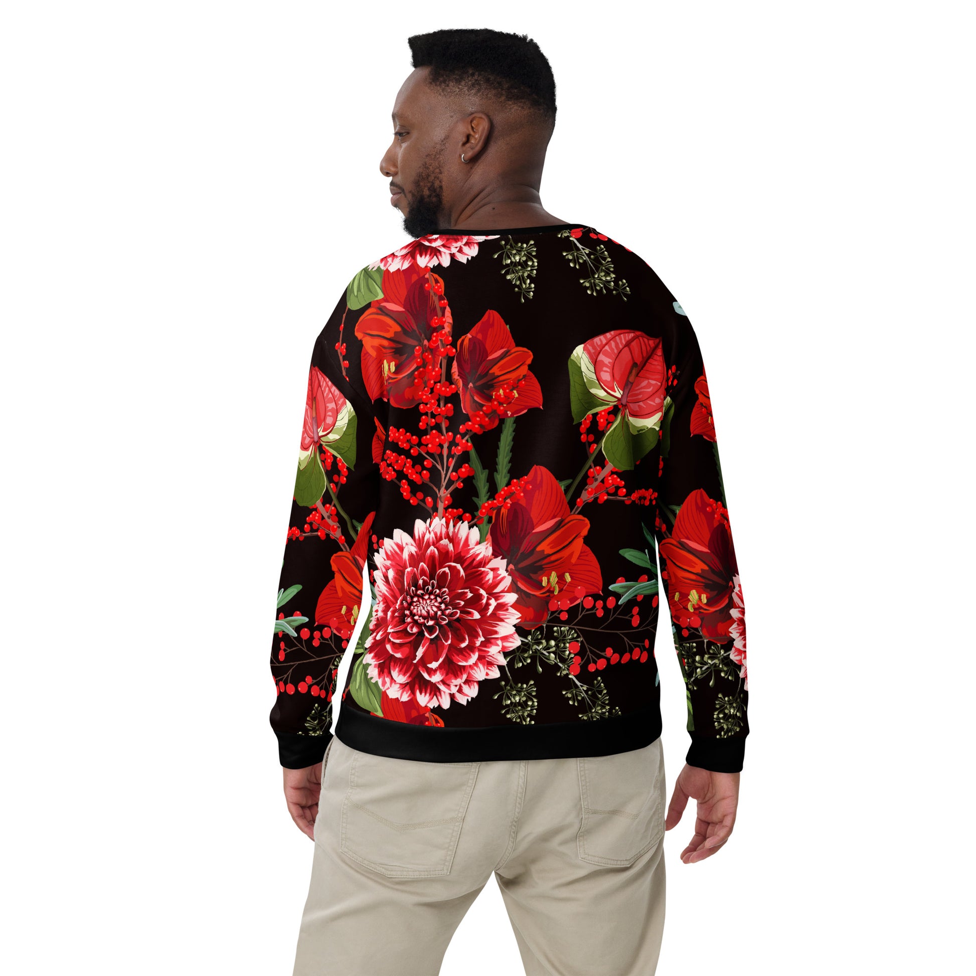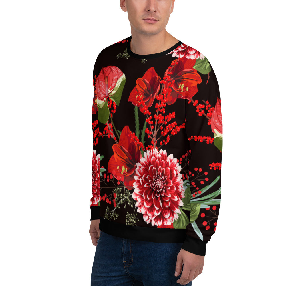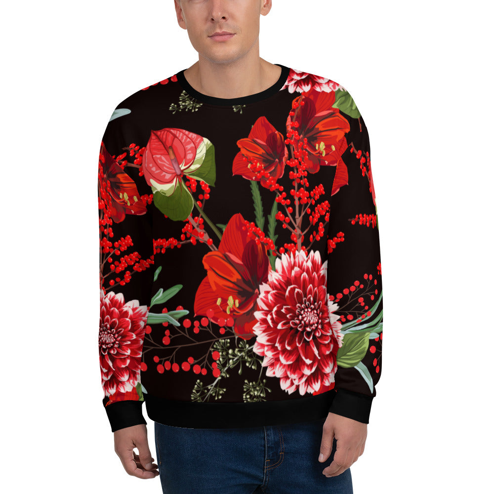 Make a statement and look absolutely fabulous with this precision-cut and hand-sewn multicoloured, floral all-over print unisex sweatshirt from Desirable Tees that is guaranteed to turn heads!