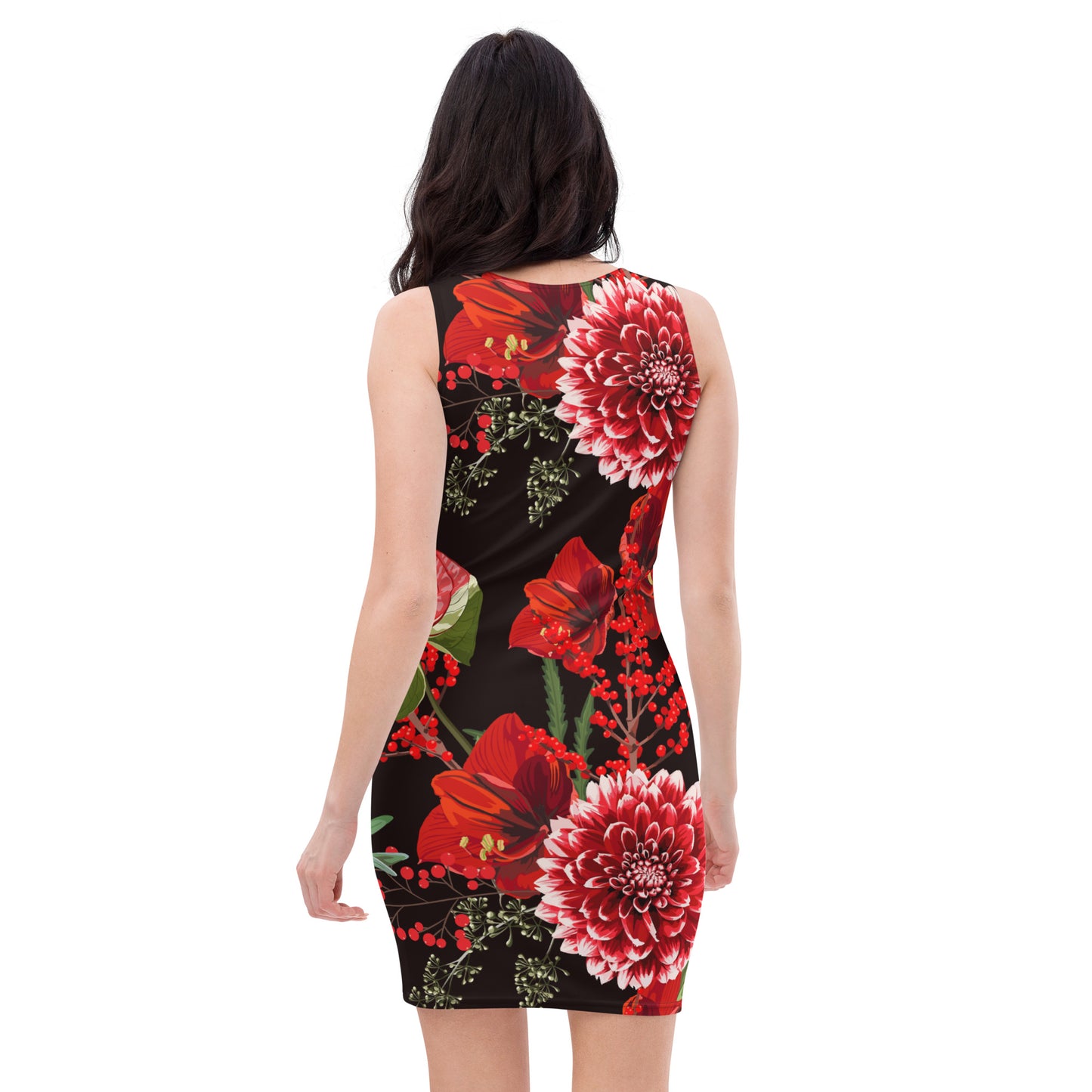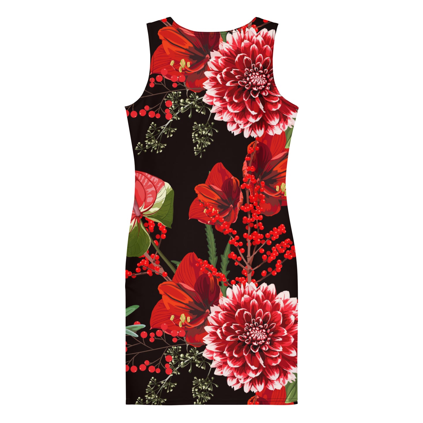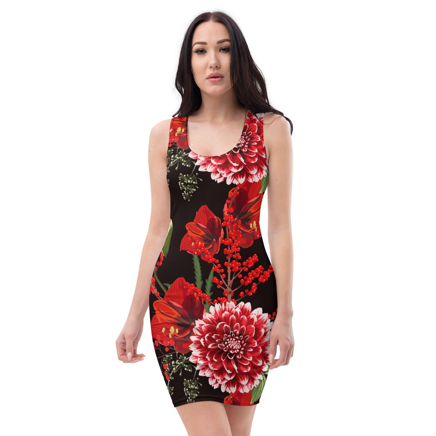 Floral Party Dress Red Black Floral All-Over Oversized Print Bodycon Dress