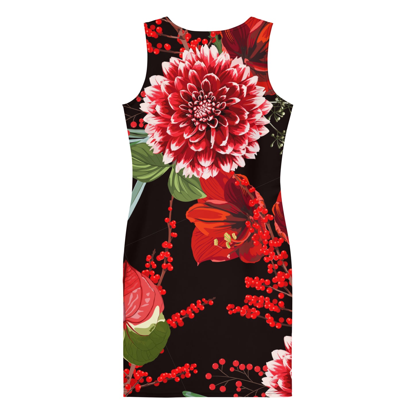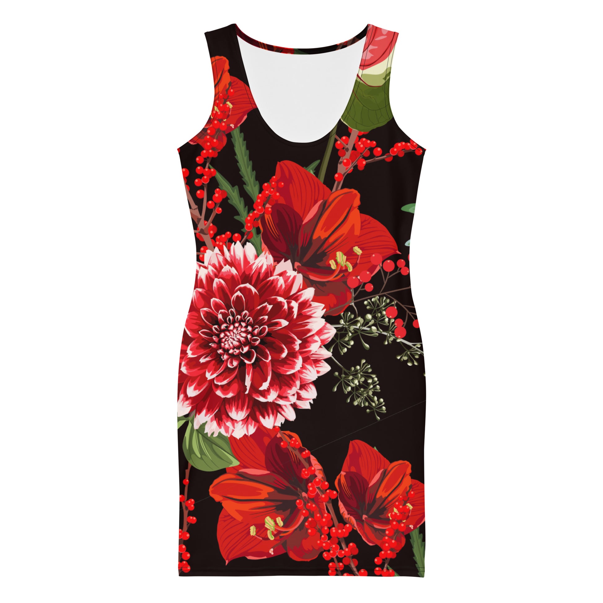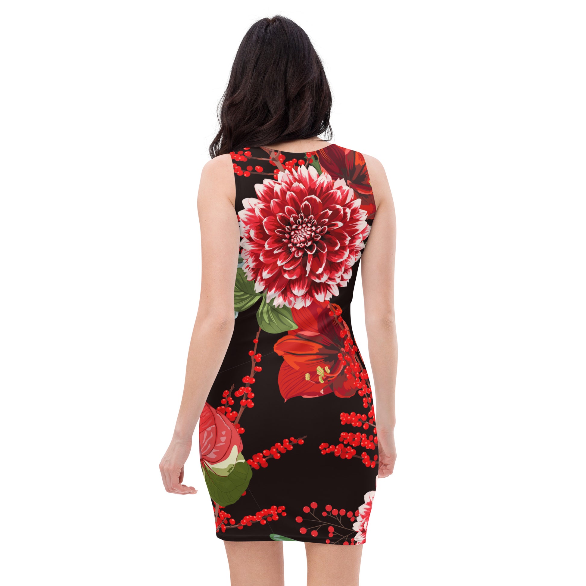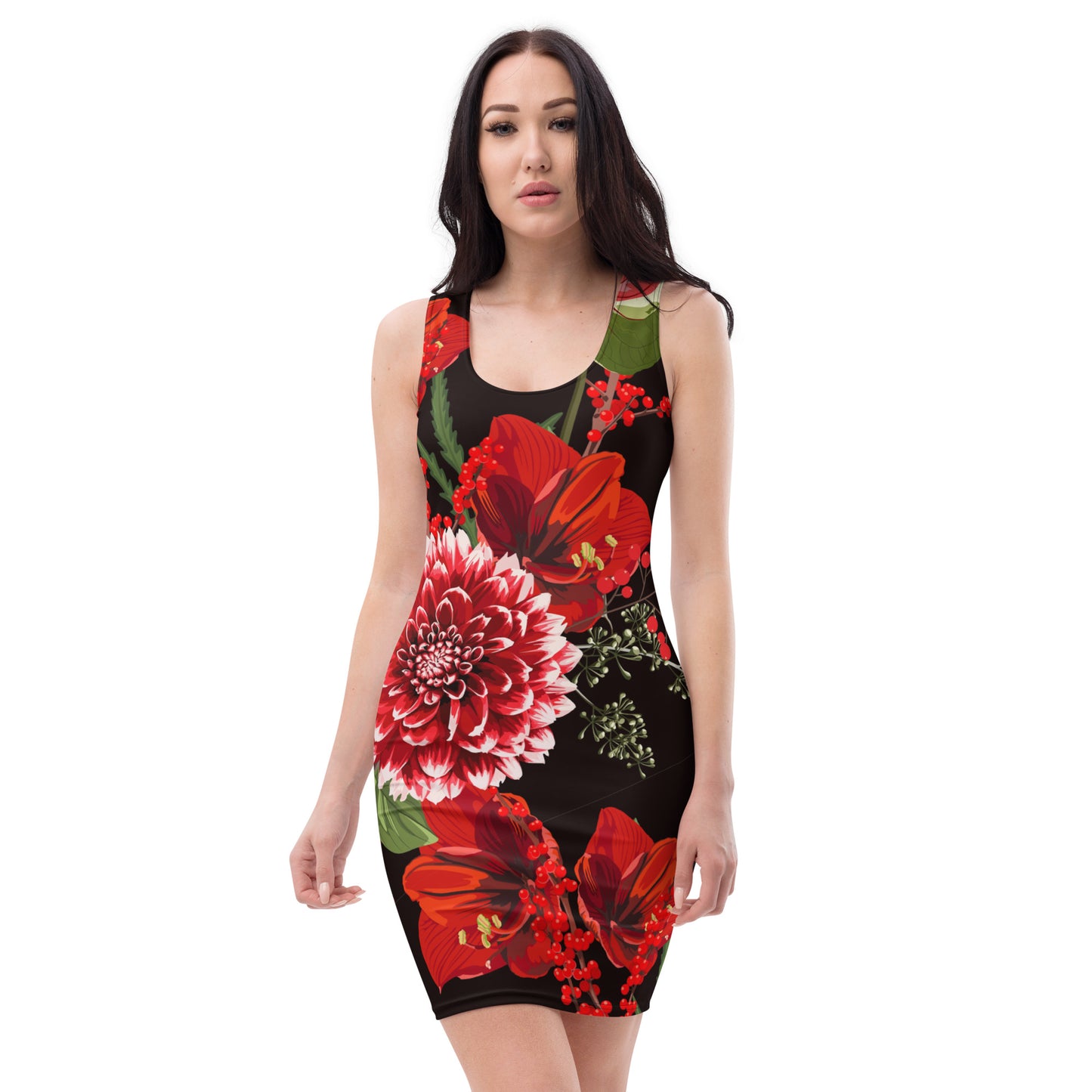 Floral Party Dress Red Black Floral All-Over Oversized Print Bodycon Dress
