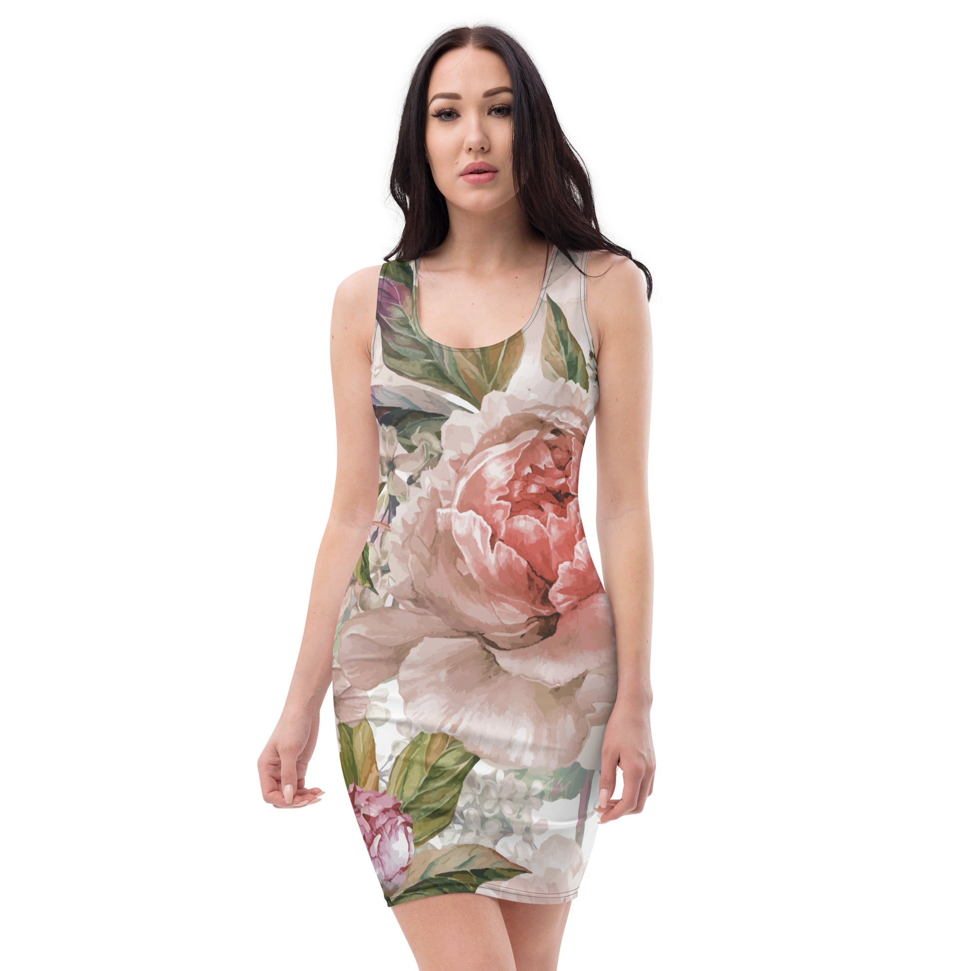 Make a bold statement at your next party and look absolutely fabulous in this dazzling floral all-over print, stretch and fitted dress from Desirable Tees that is guaranteed to turn heads.