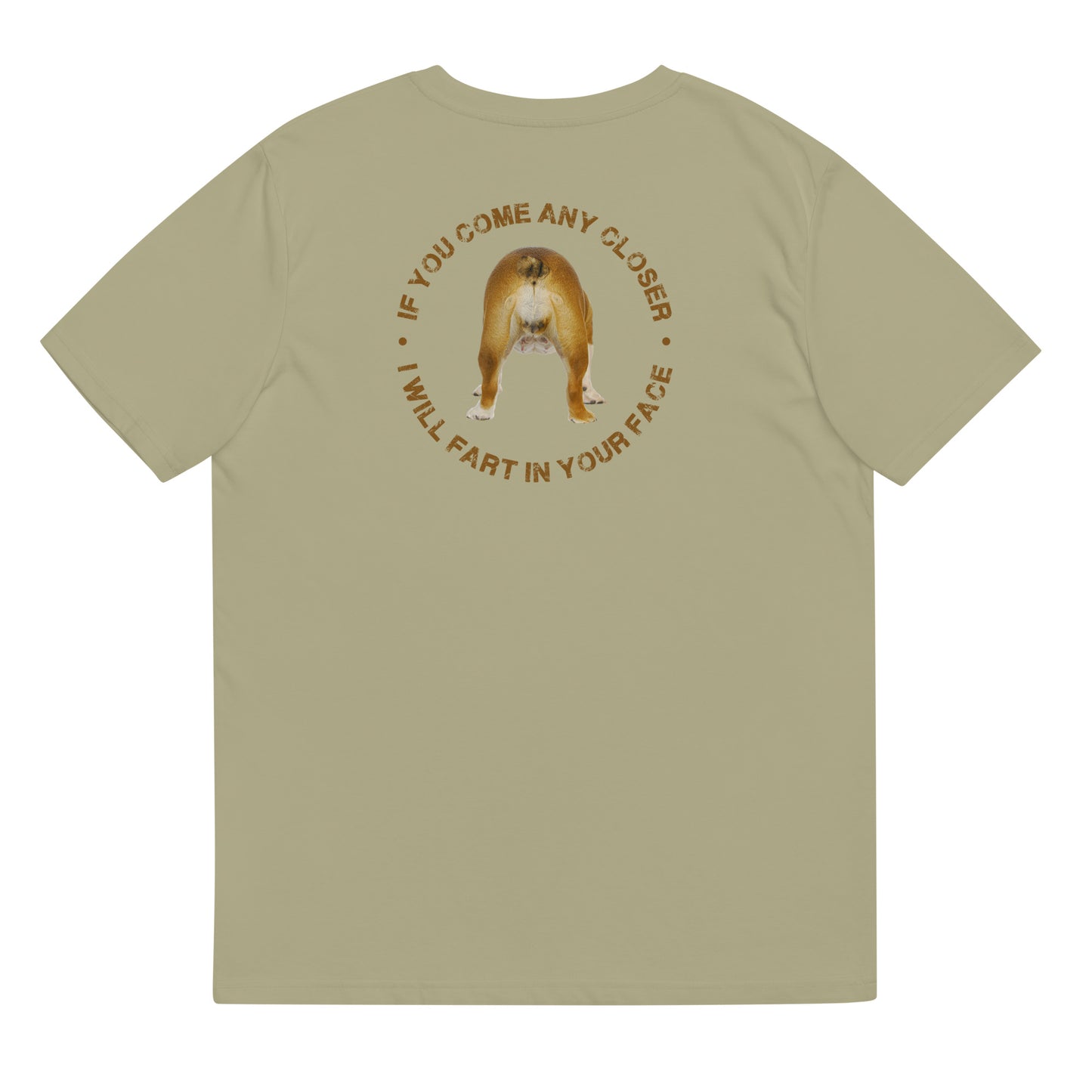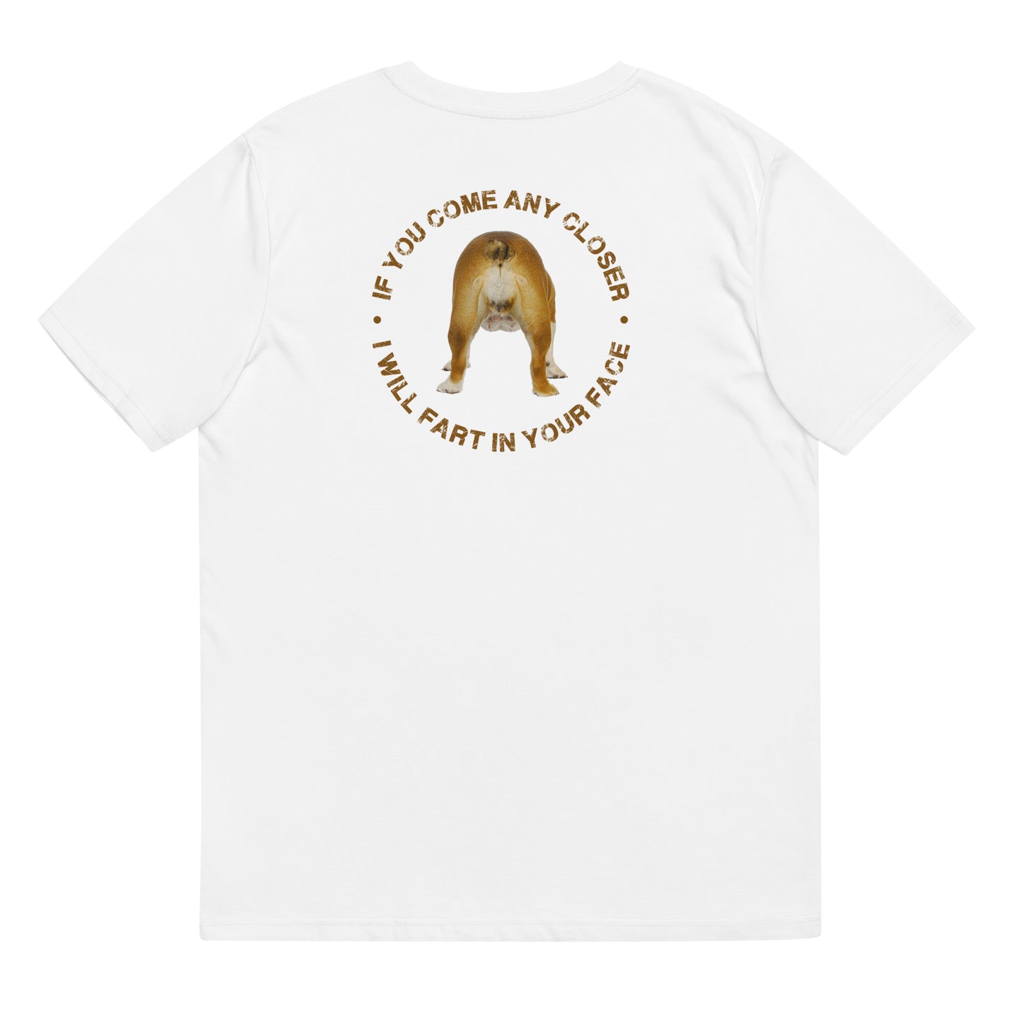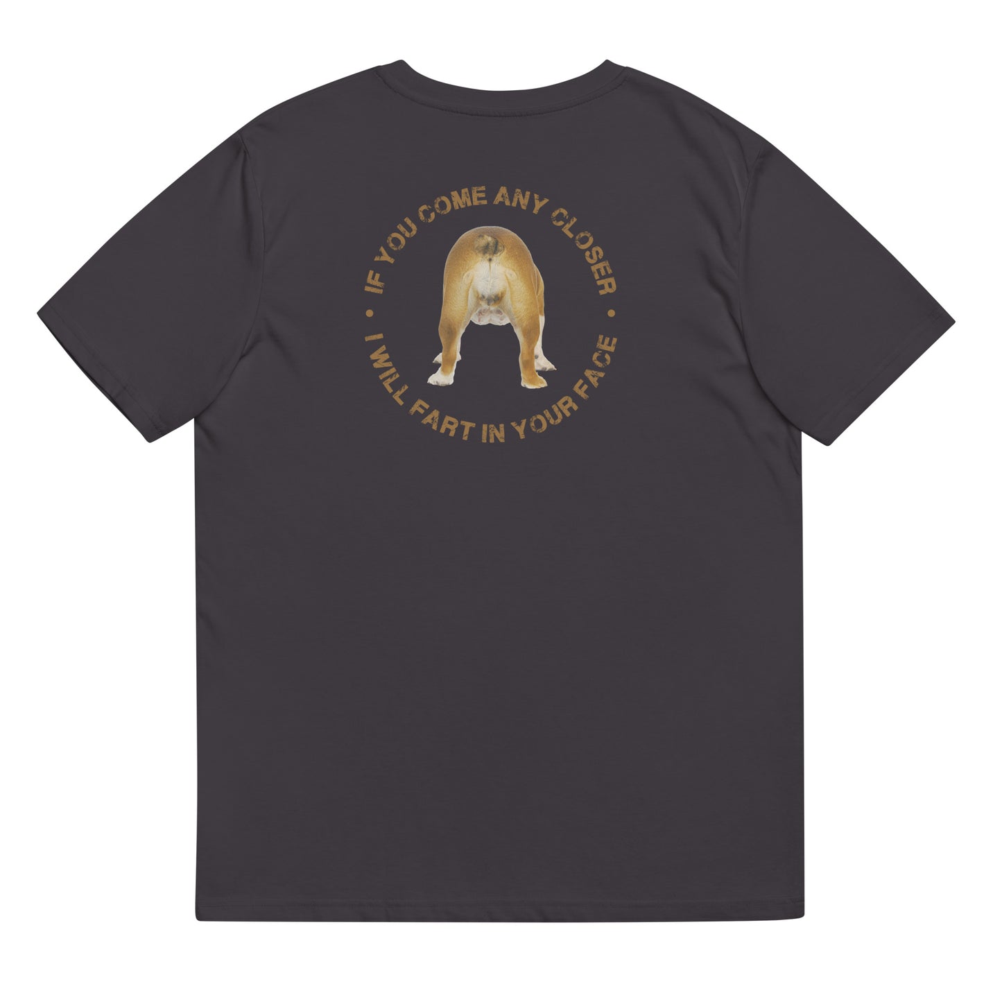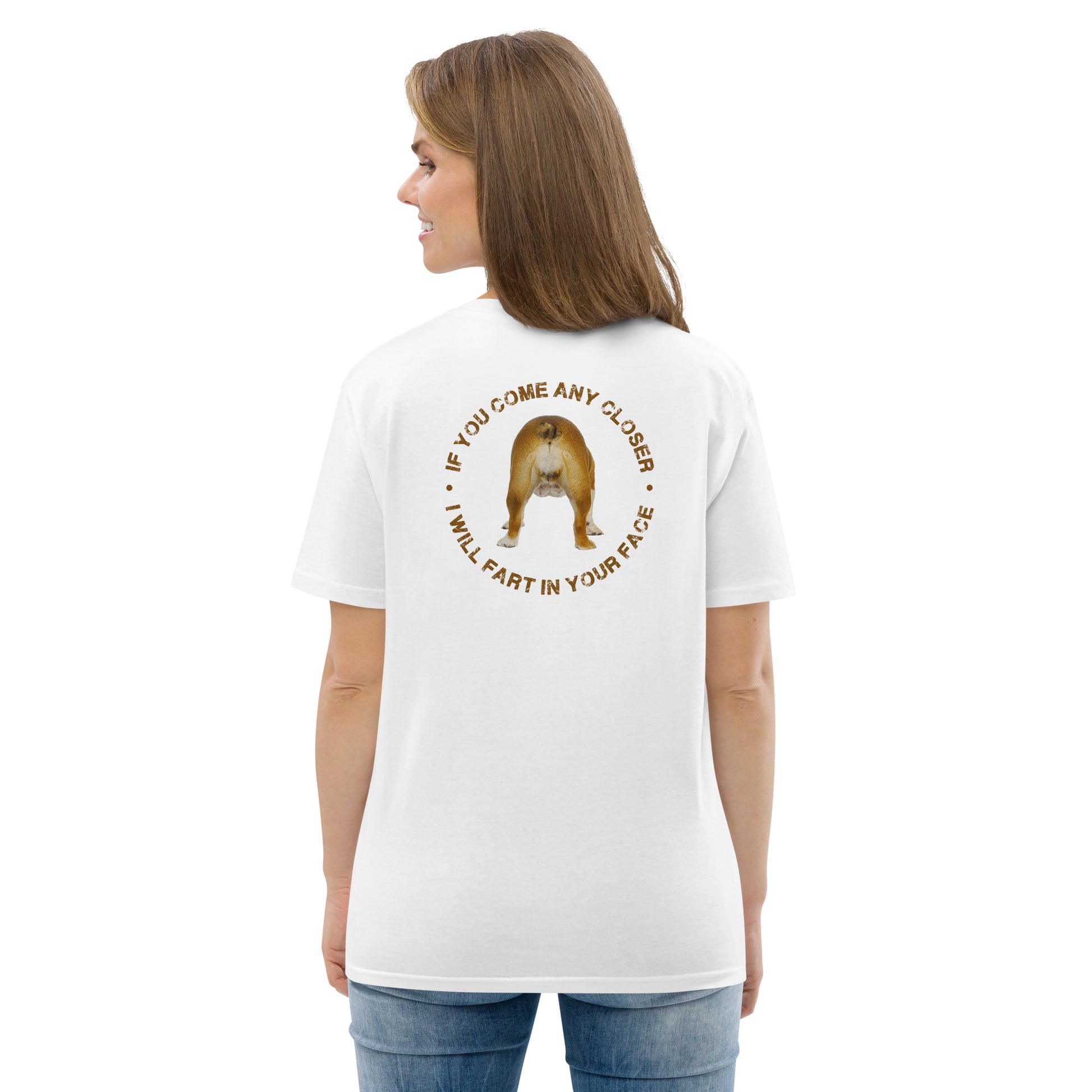 Funny Dog TShirt Humorous Dog Baring Backside Threatening To Fart Unisex Organic Cotton T-Shirt