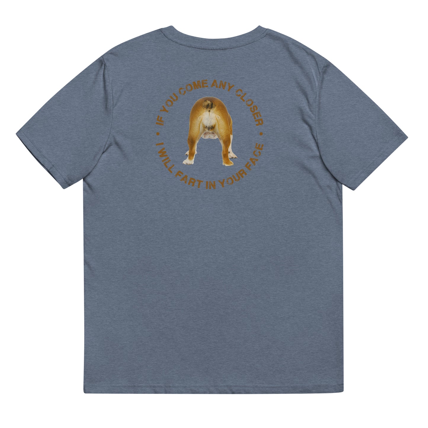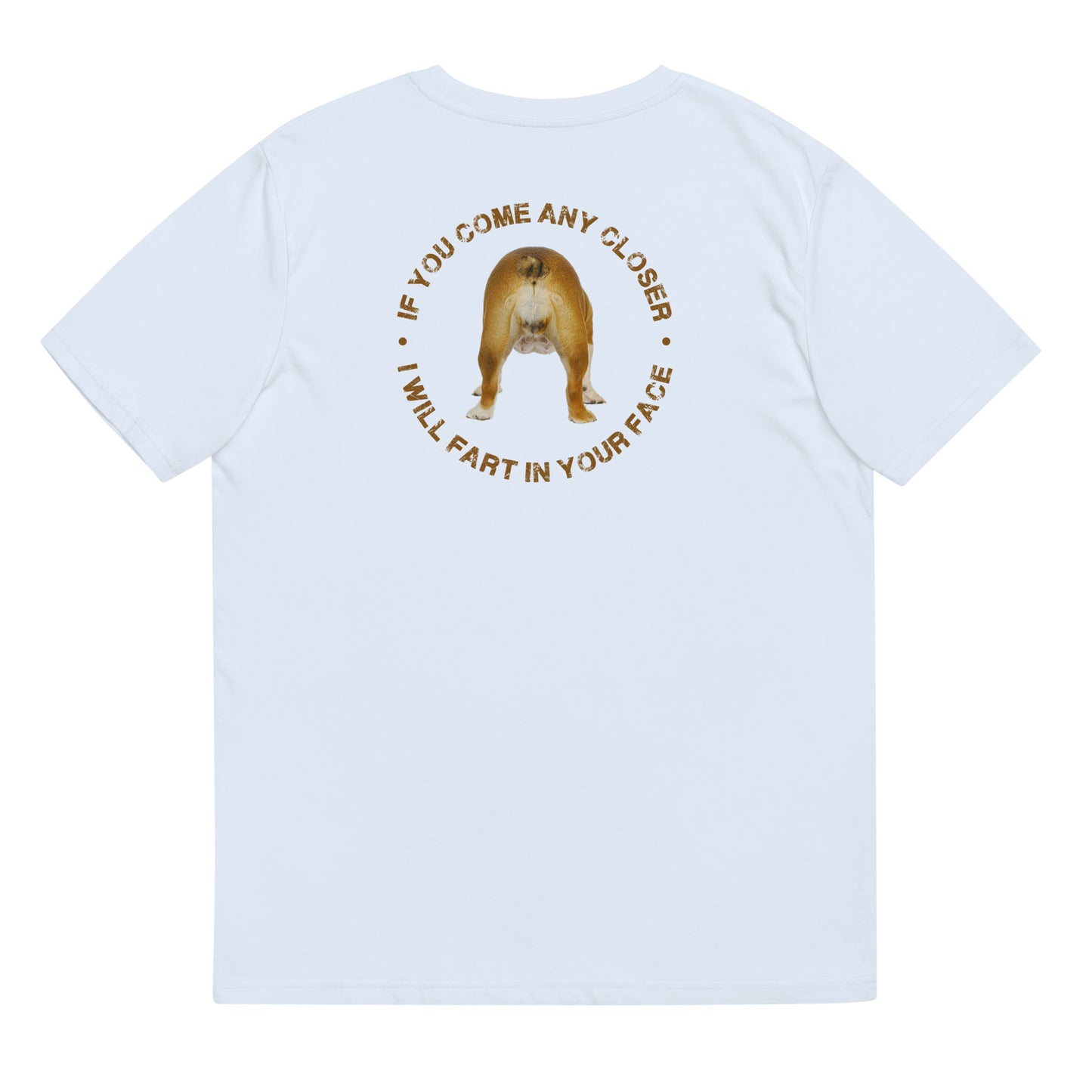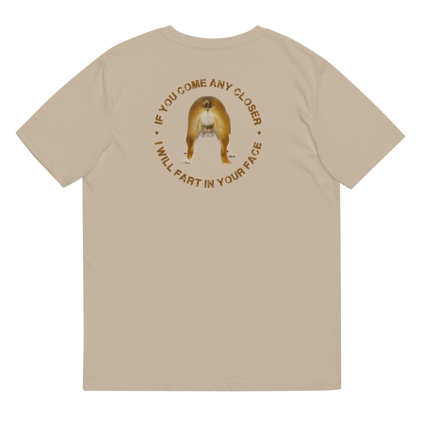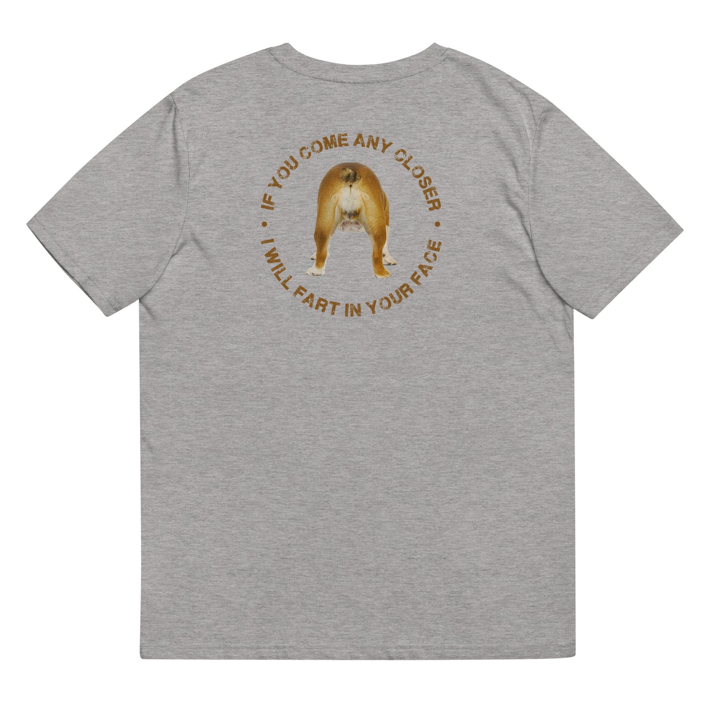 Funny Dog TShirt Humorous Dog Baring Backside Threatening To Fart Unisex Organic Cotton T-Shirt