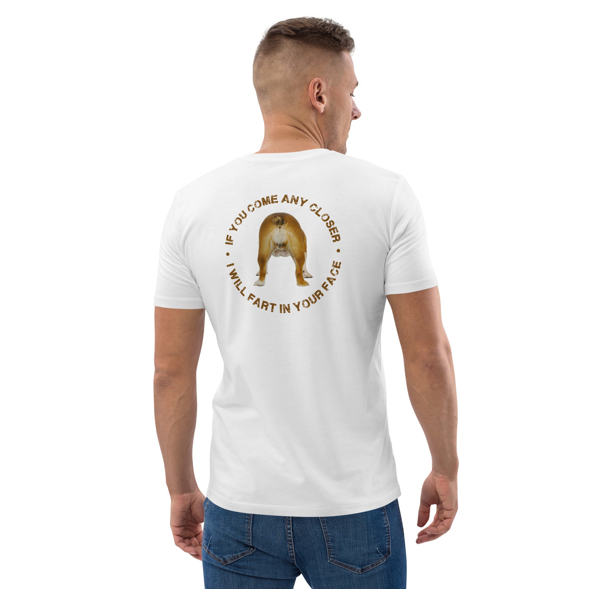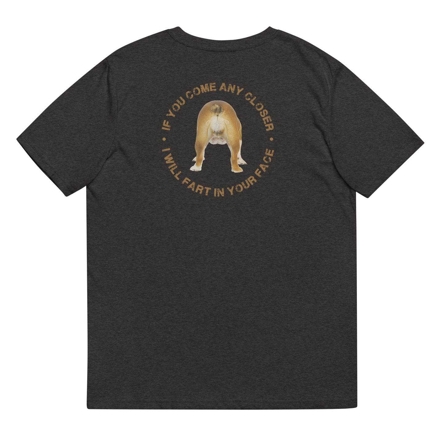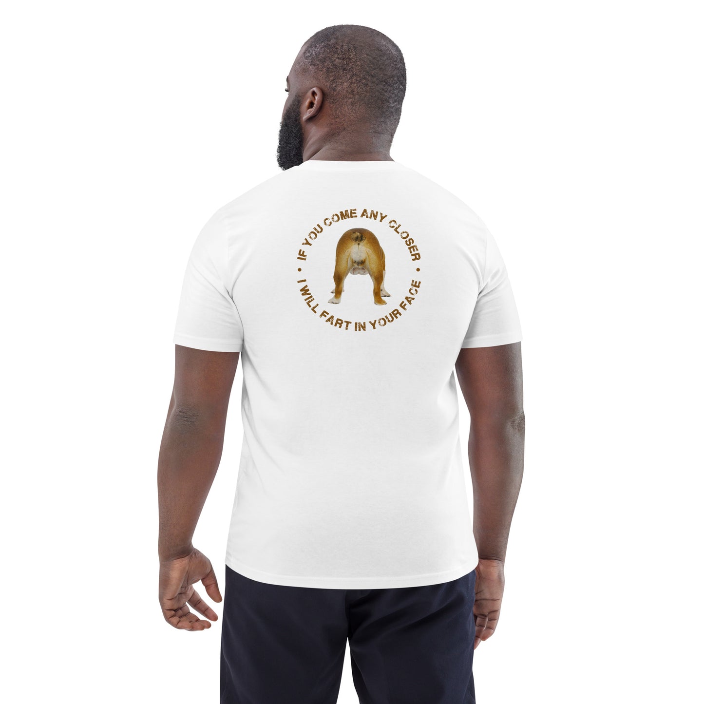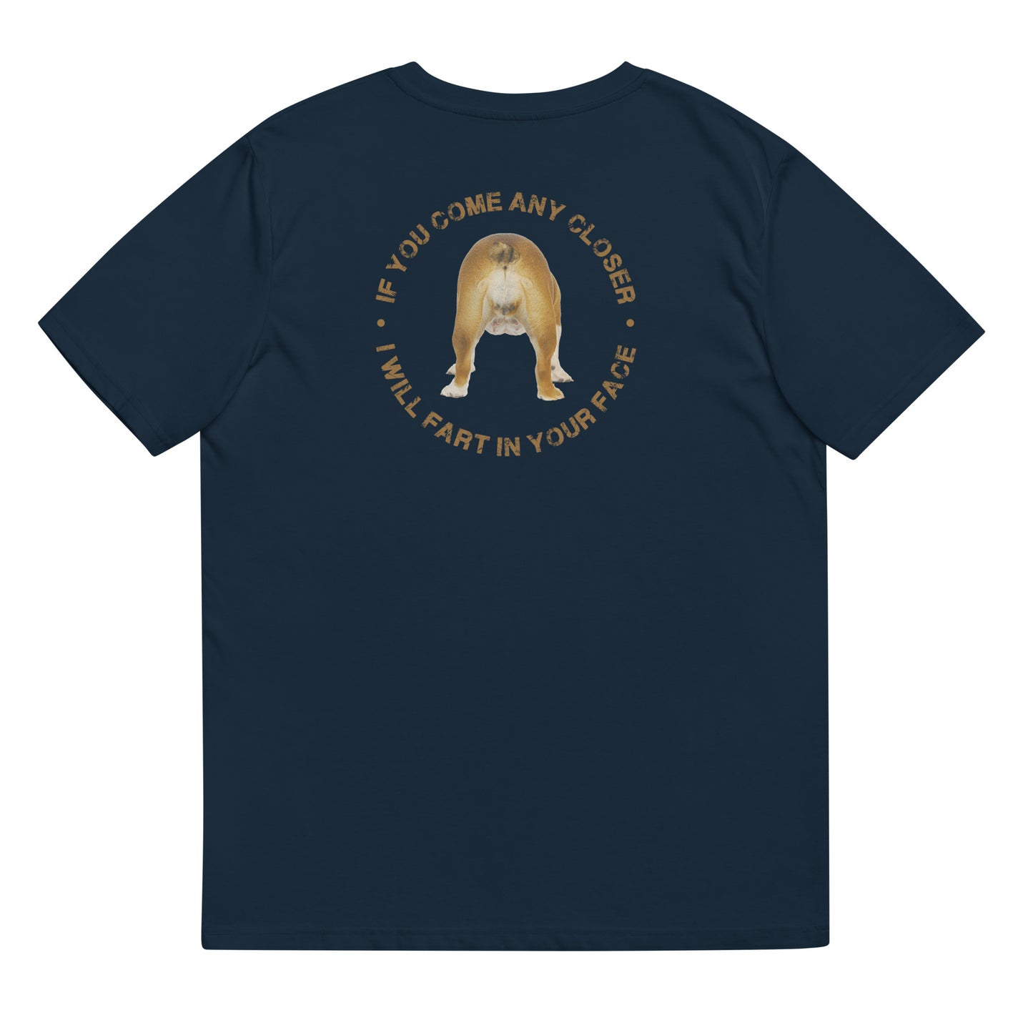 Funny Dog TShirt Humorous Dog Baring Backside Threatening To Fart Unisex Organic Cotton T-Shirt