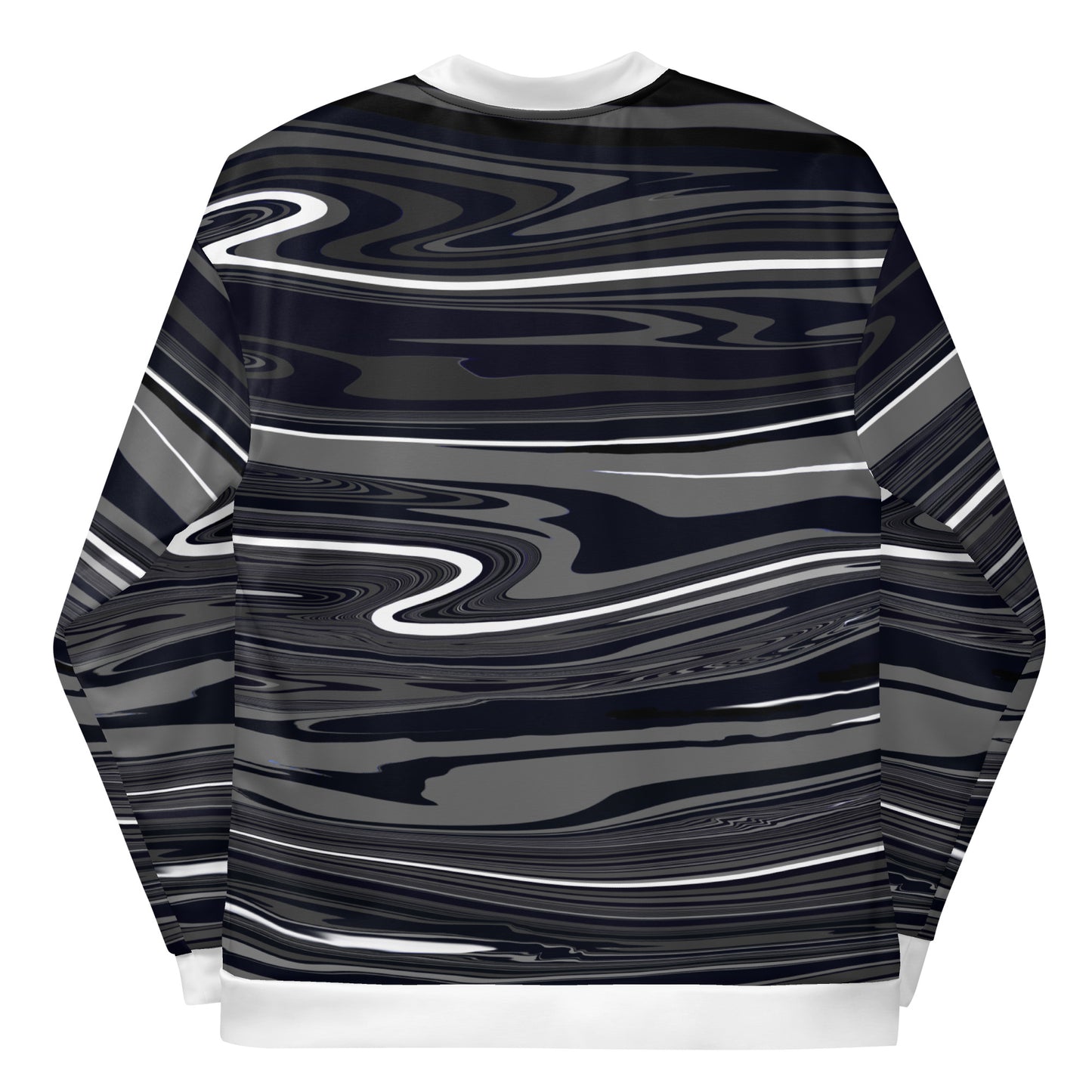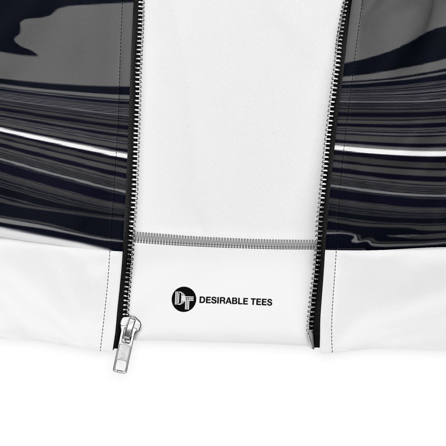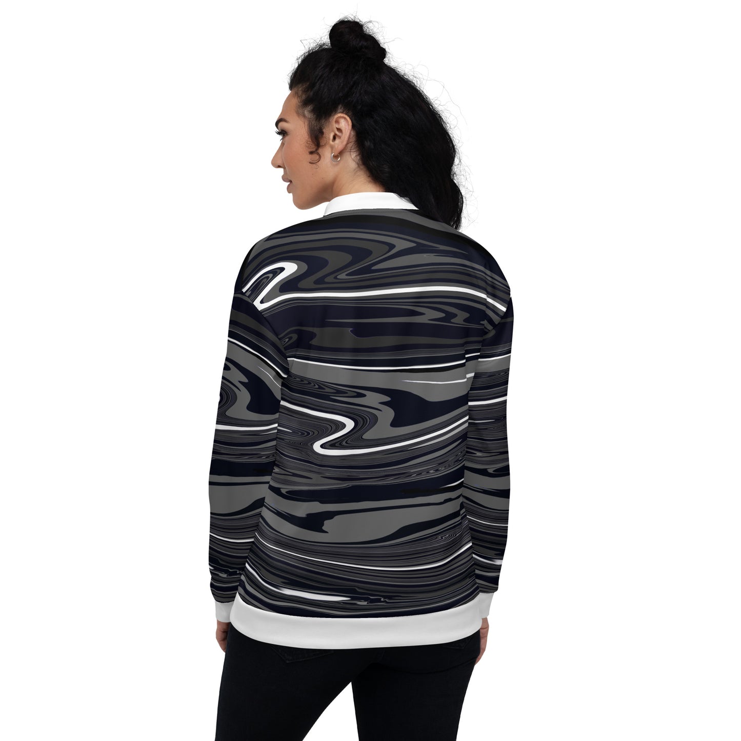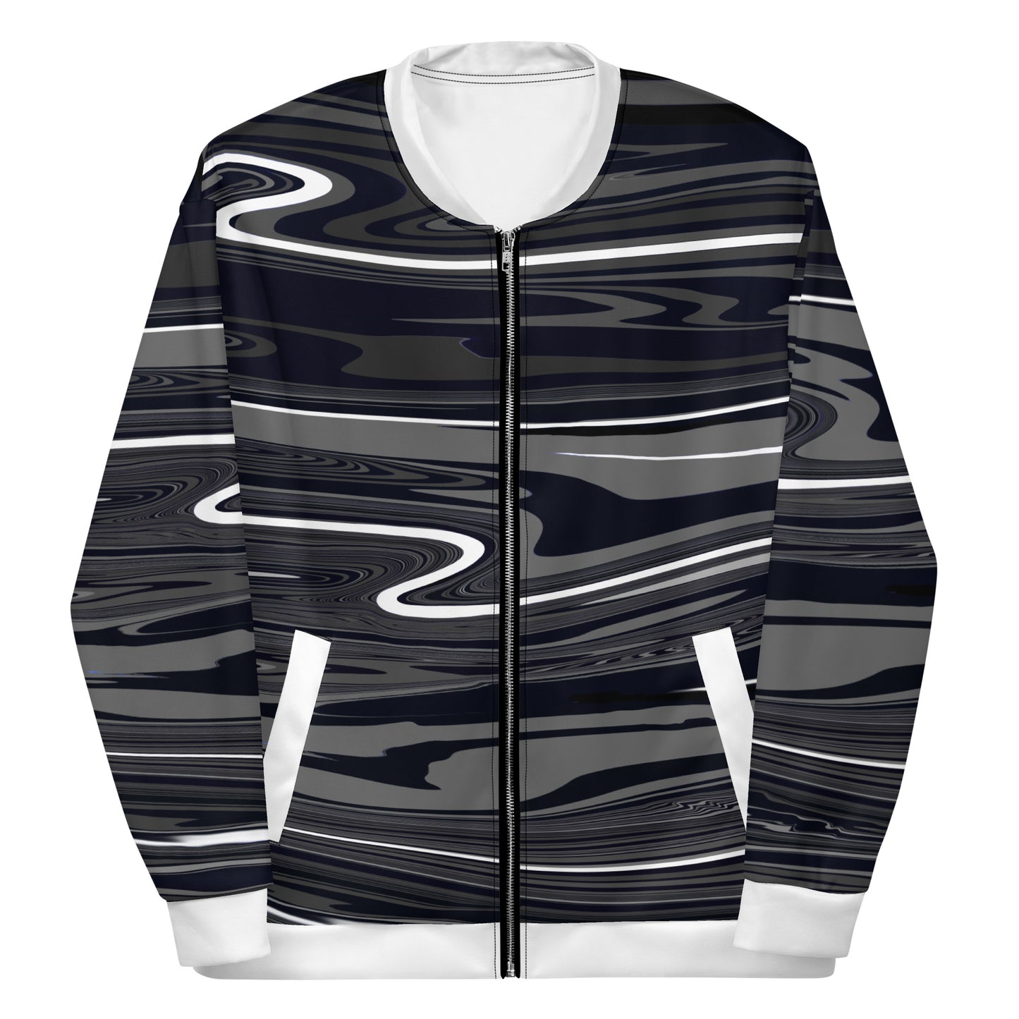 Make a statement and look absolutely fabulous in this dazzling abstract monochromatic striped all-over print unisex bomber jacket with contrasting details from Desirable Tees that is guaranteed to turn heads!