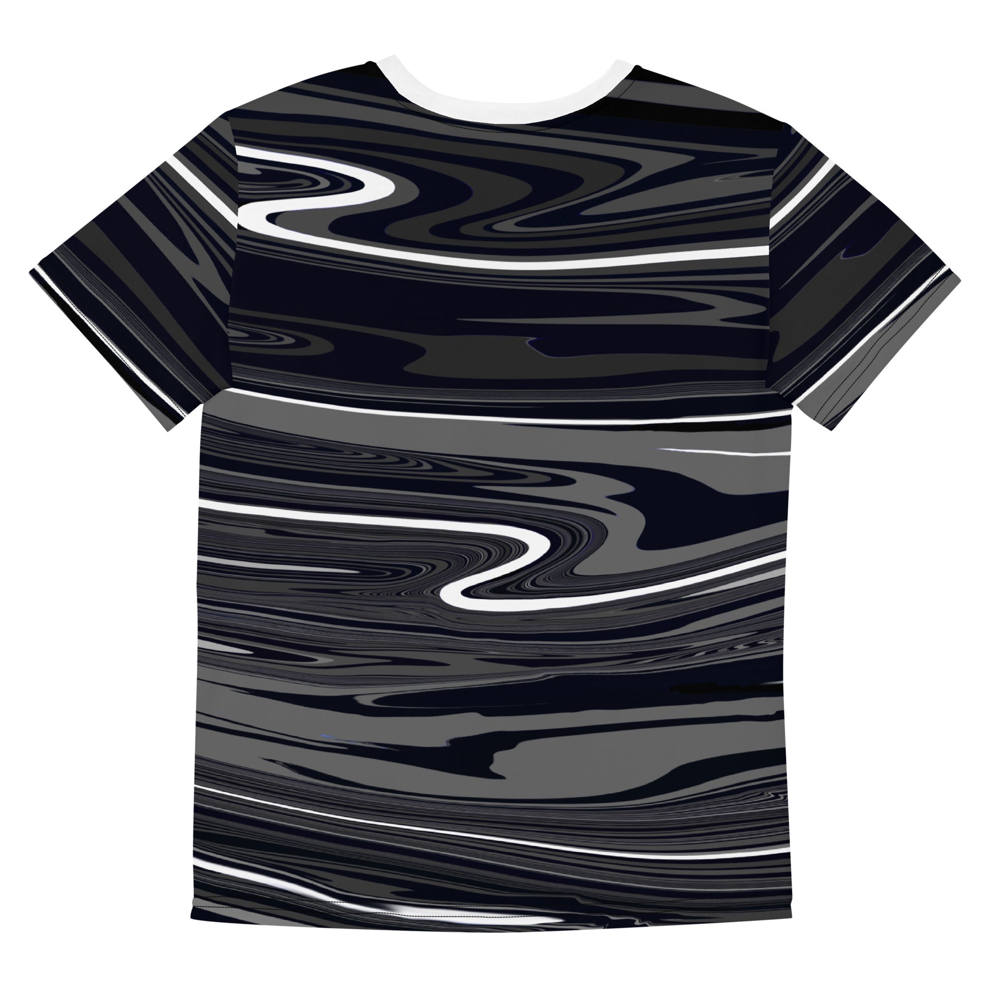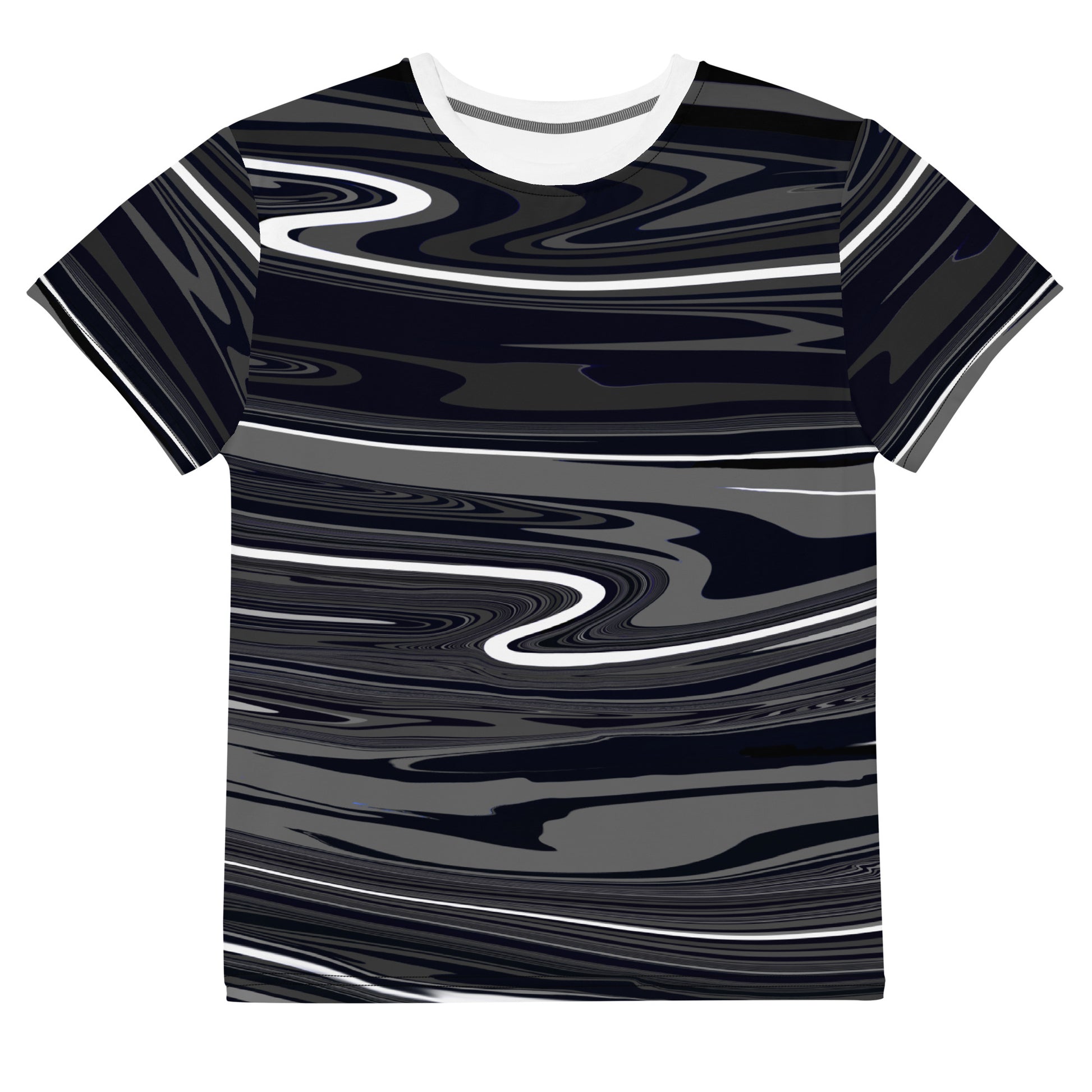Grey/Black Monochromatic Abstract Striped All-Over Print Youth T-Shirt