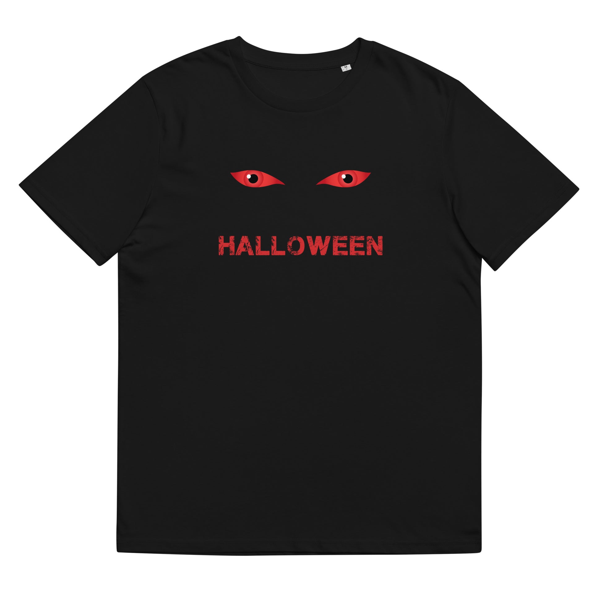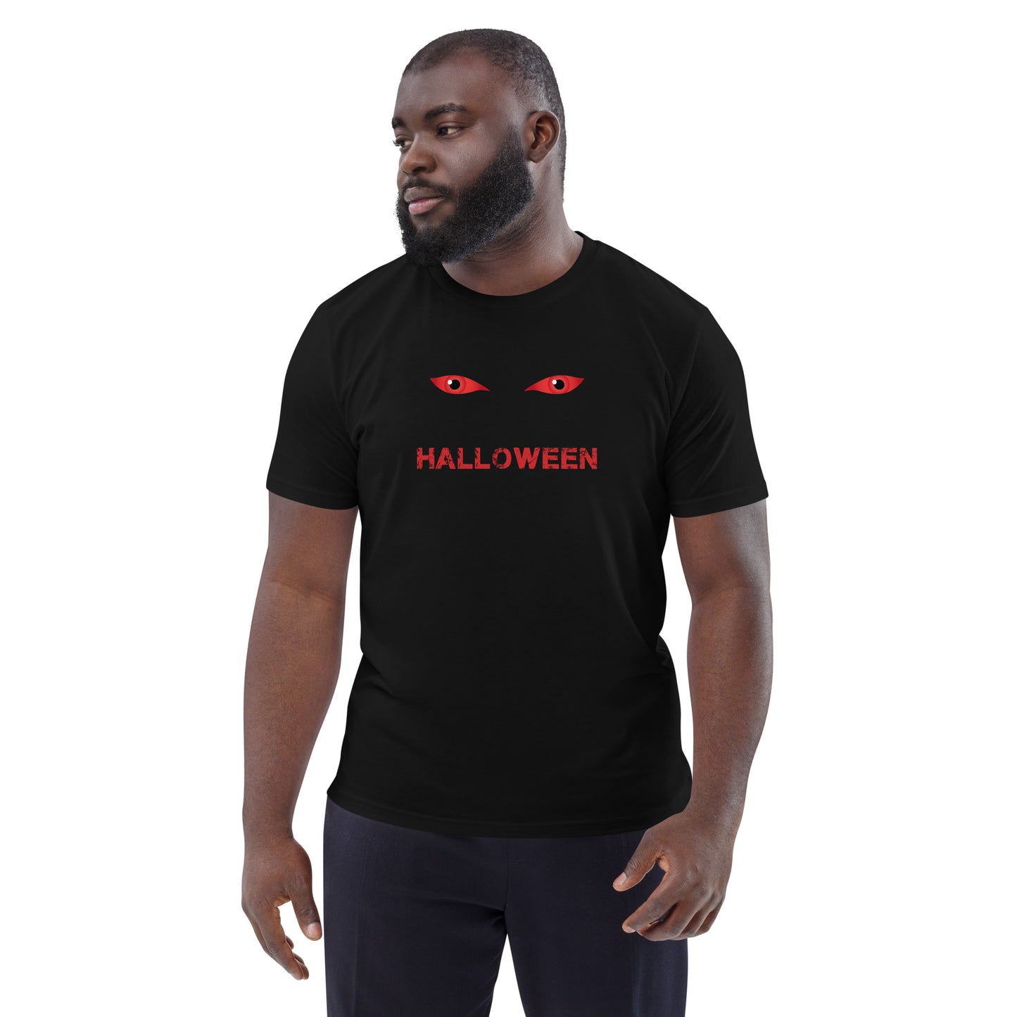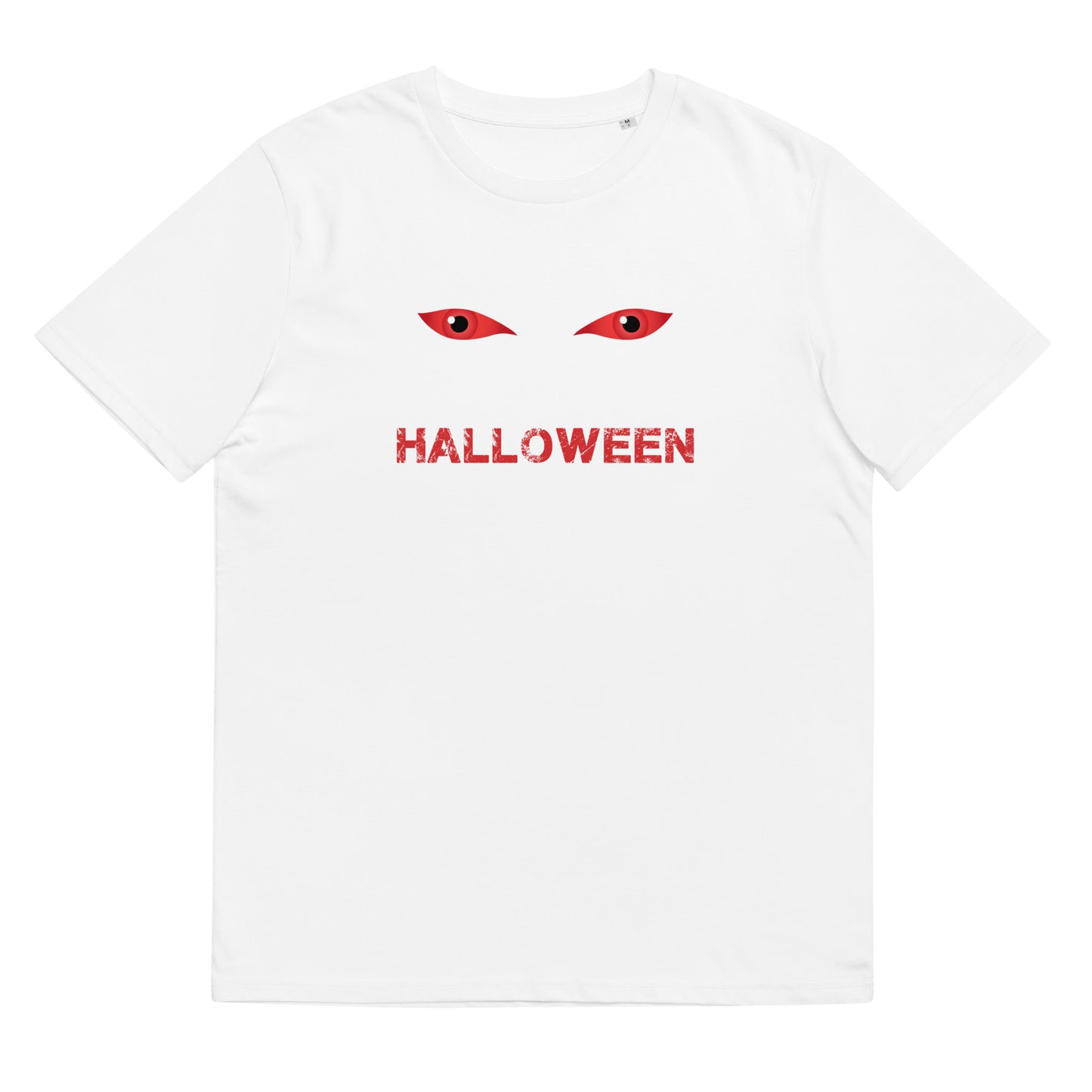 Halloween TShirt Spooky Scary Demonic Blood Red Devil Eyes Unisex Organic Cotton T Shirt