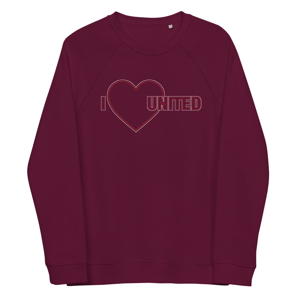 Manchester United Sweatshirt I Love United Sweatshirt I Love Man United Football Supporter Unisex Organic Cotton Sweatshirt
