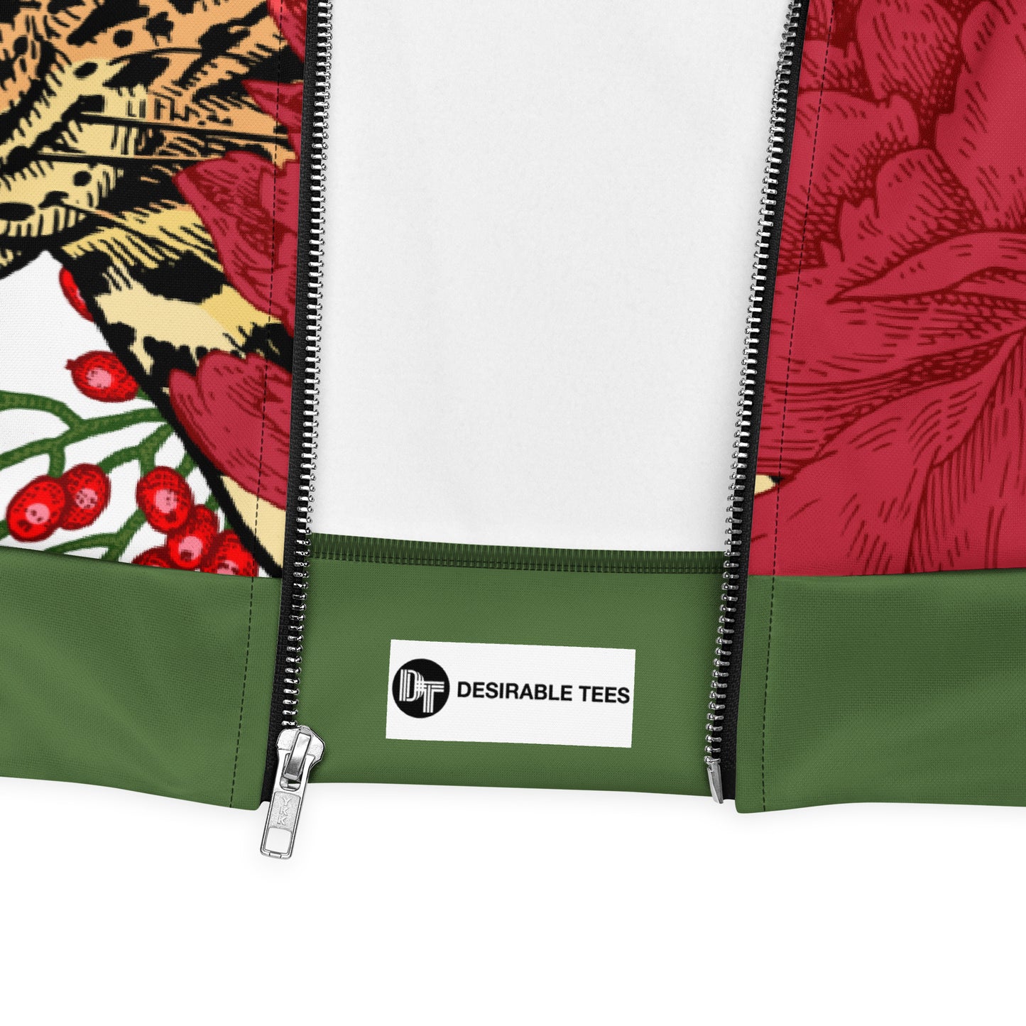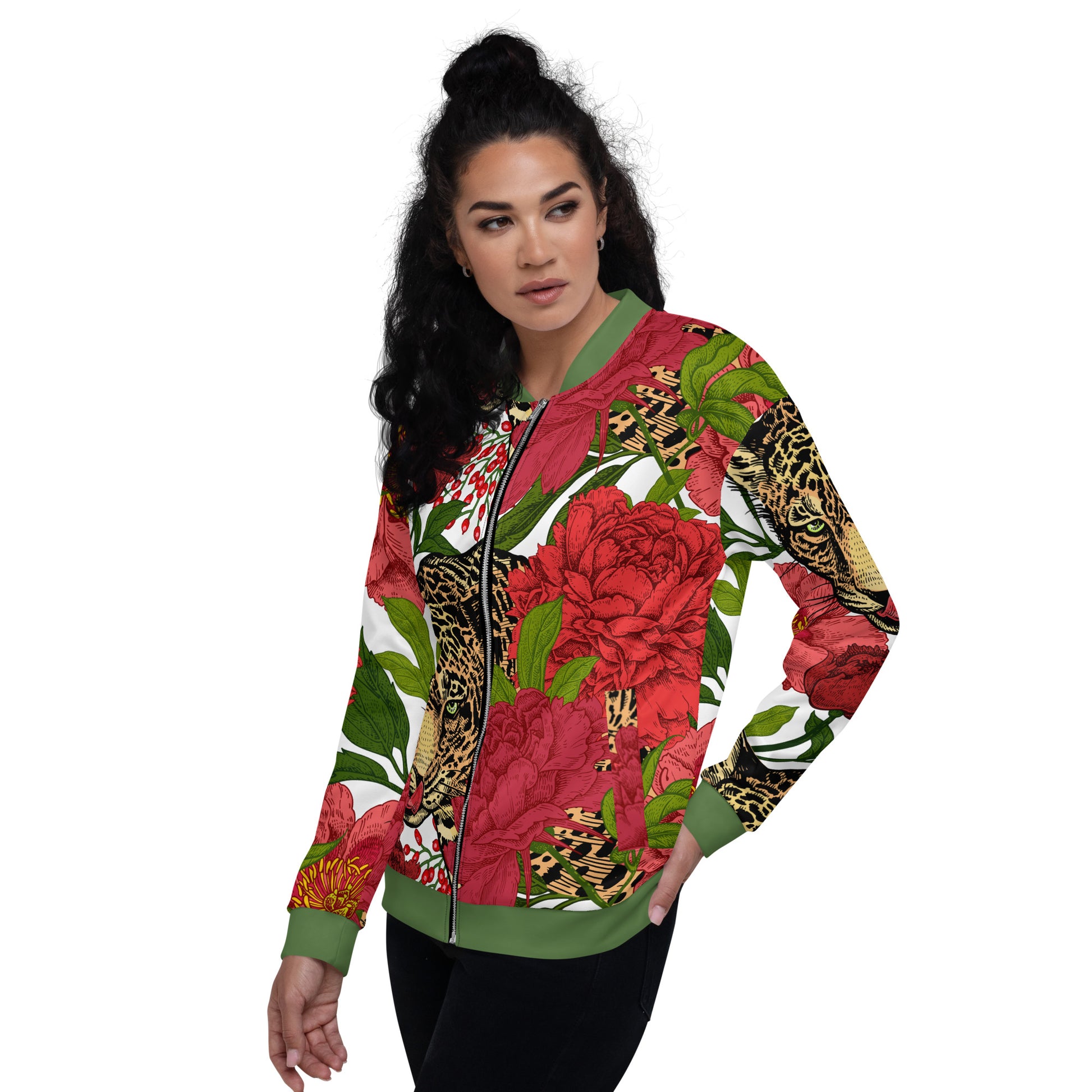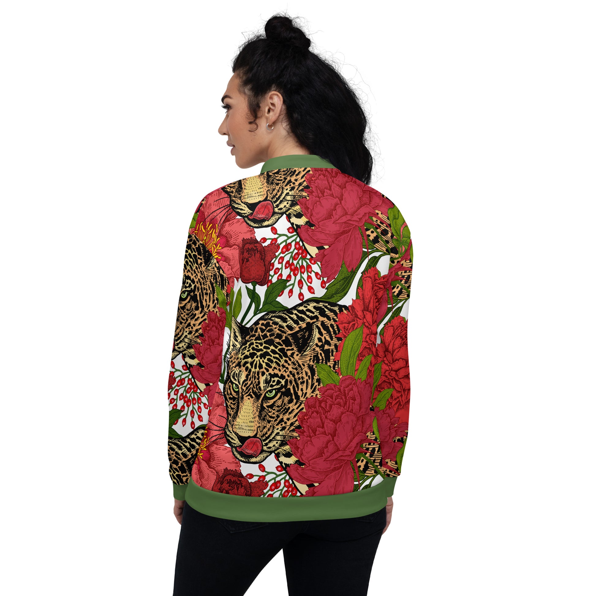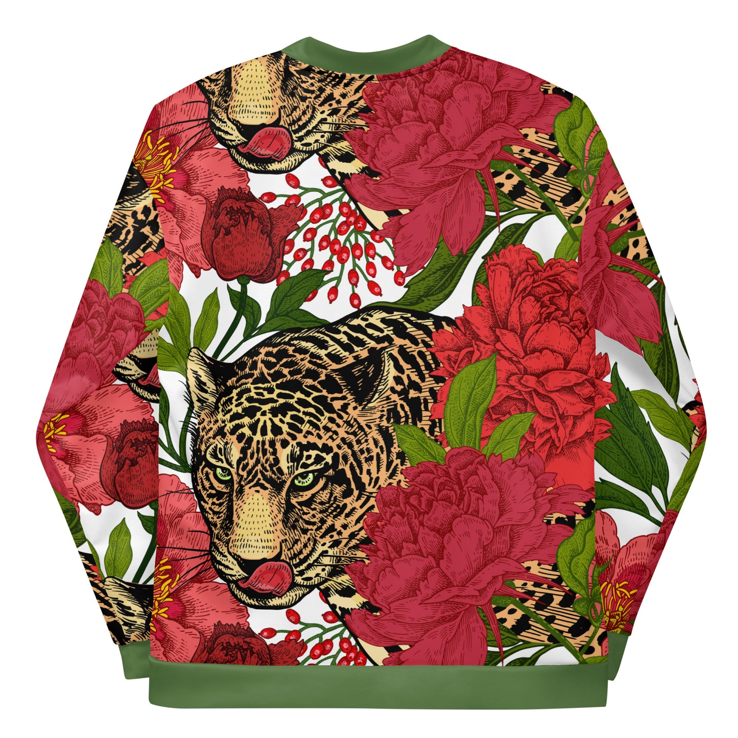 Make a statement and look absolutely fabulous with this multicoloured leopard and floral all-over print unisex bomber jacket from Desirable Tees that is guaranteed to turn heads!