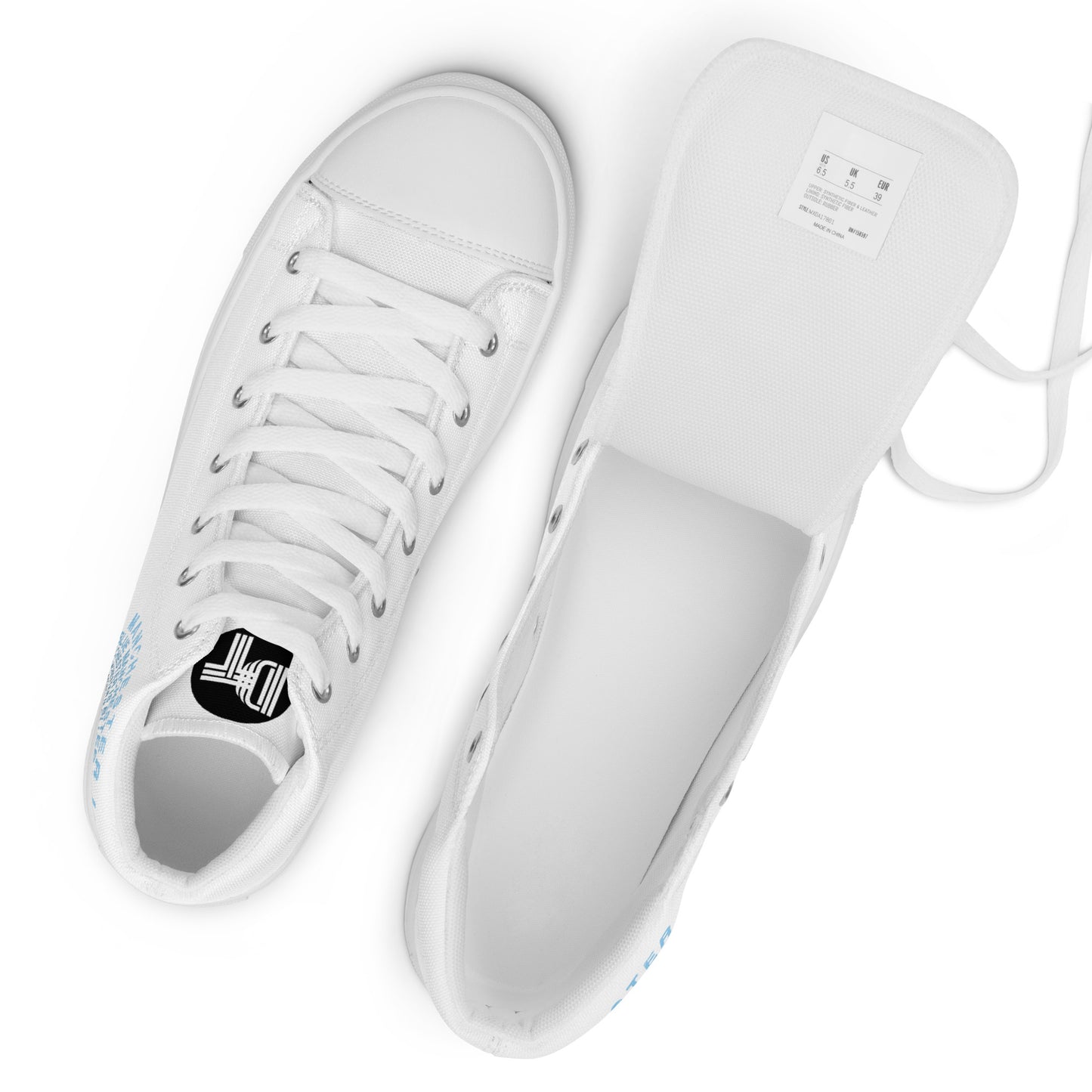 Handmade & Printed Men's High-Top Canvas Trainers in White.