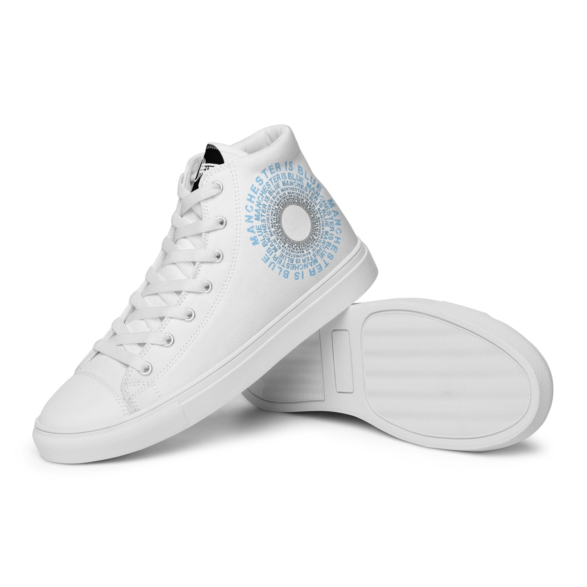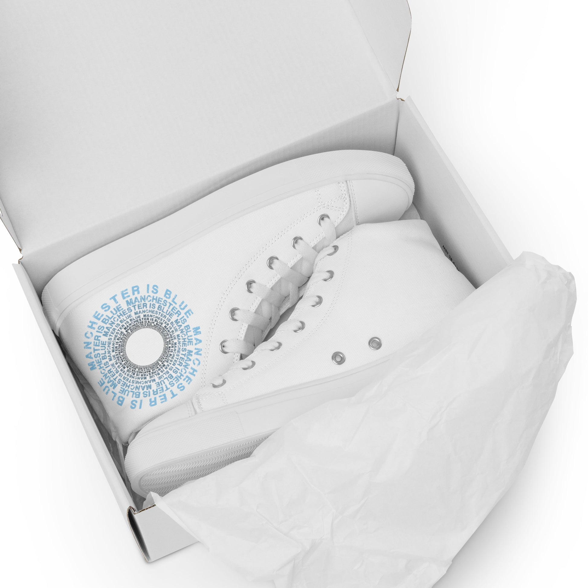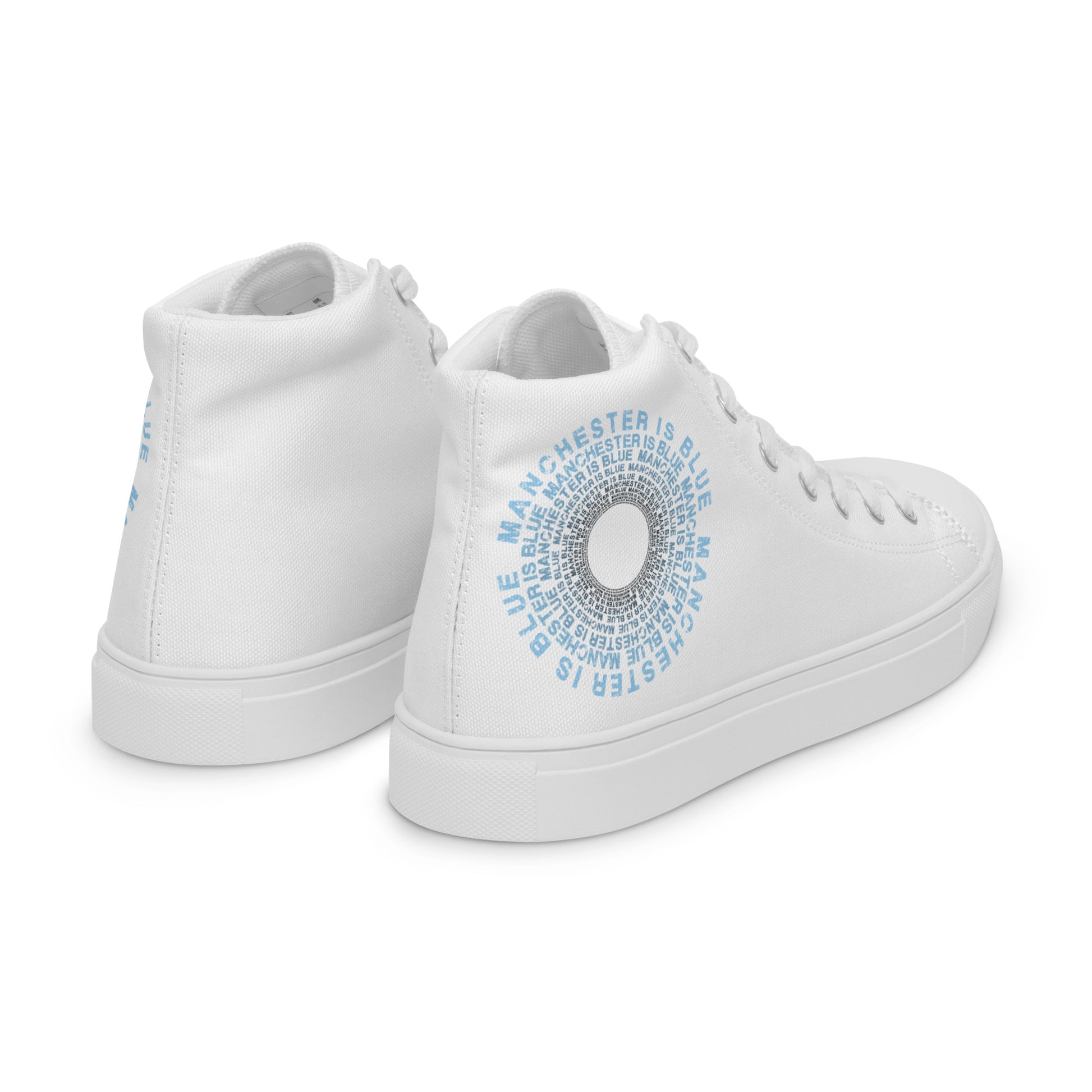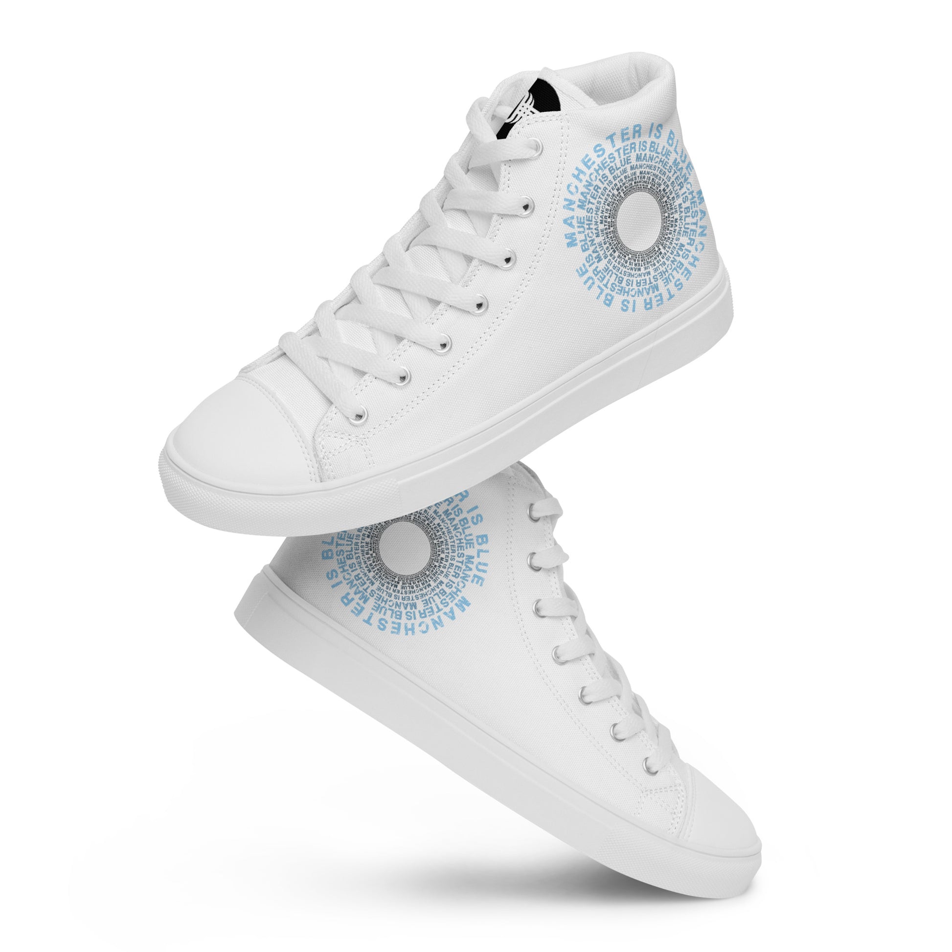 Manchester Is Blue Hi Top Trainers Man City Football Men's White Hi Top Trainers Funny City Slogan Trainers