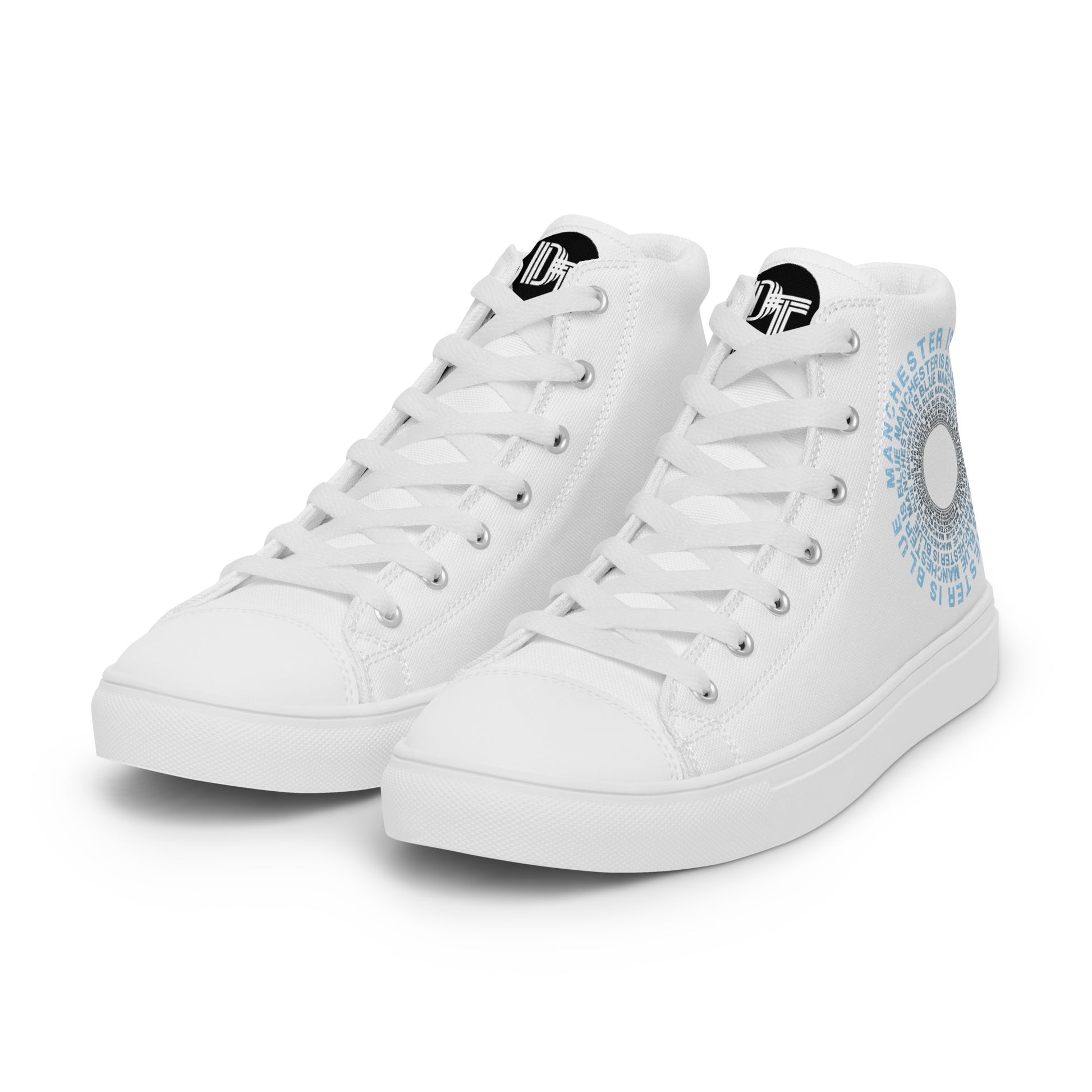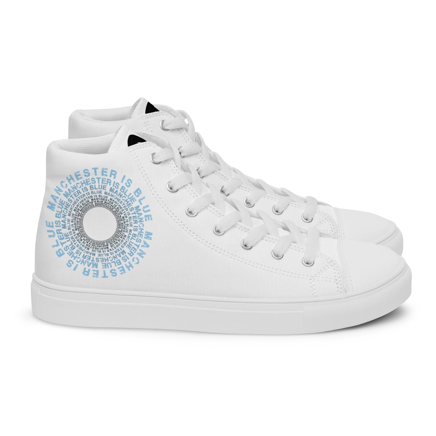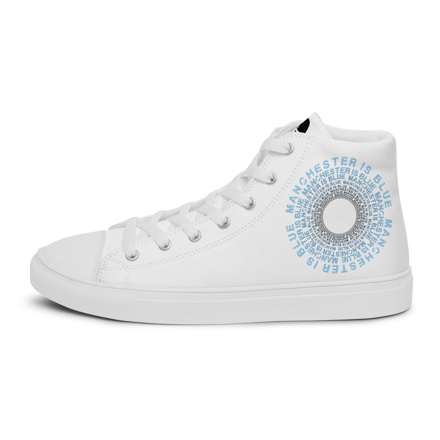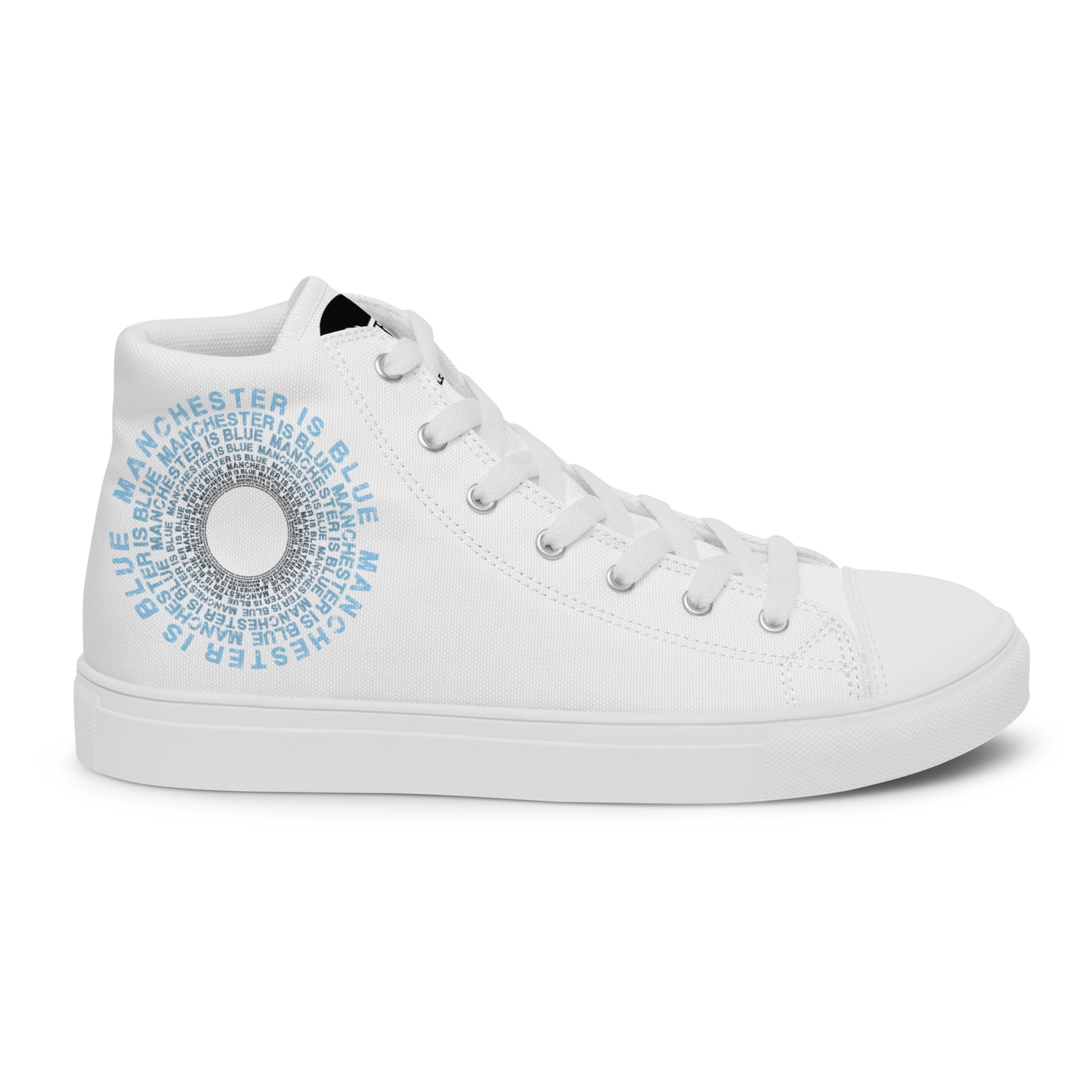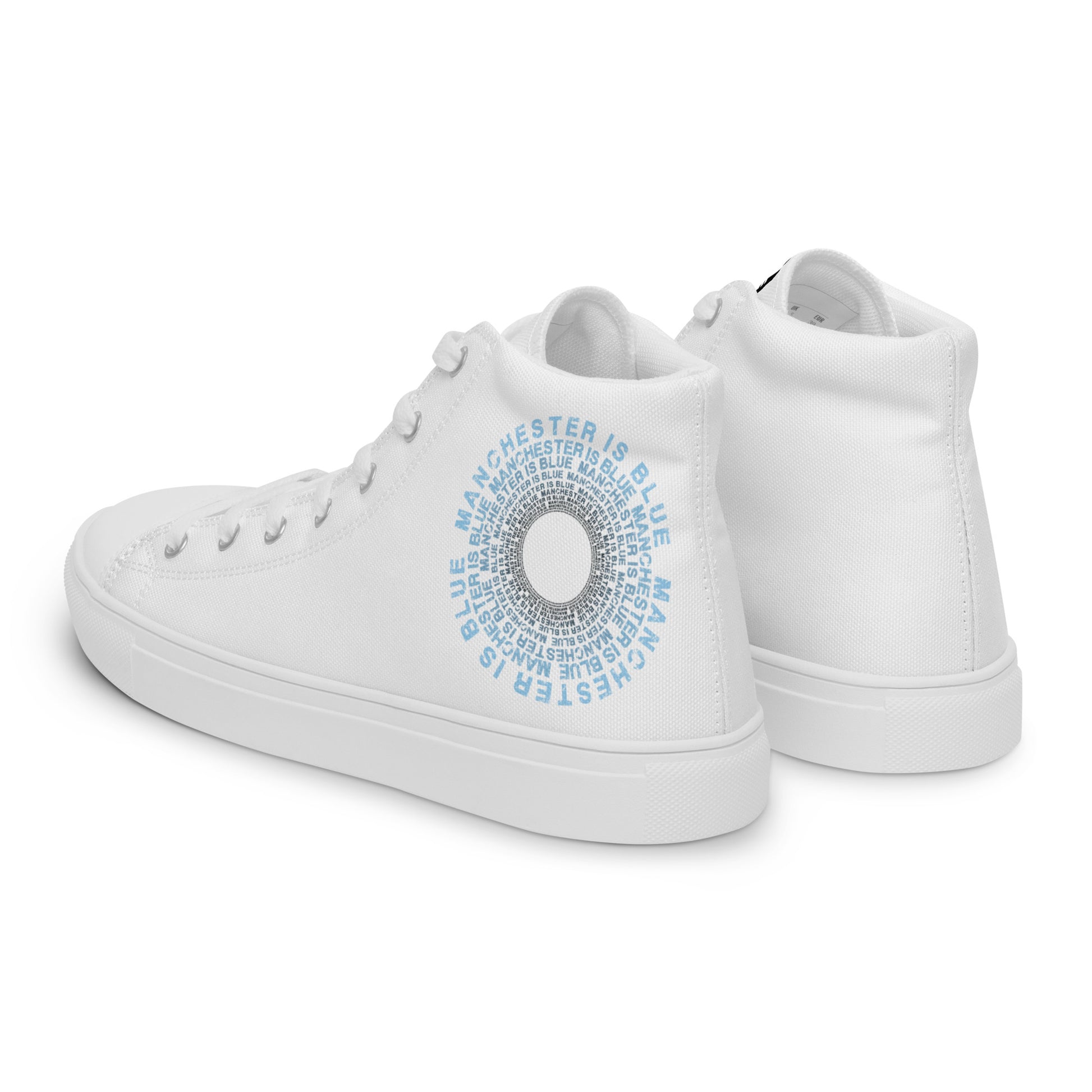 Manchester Is Blue Hi Top Trainers Man City Football Men's White Hi Top Trainers Funny City Slogan Trainers