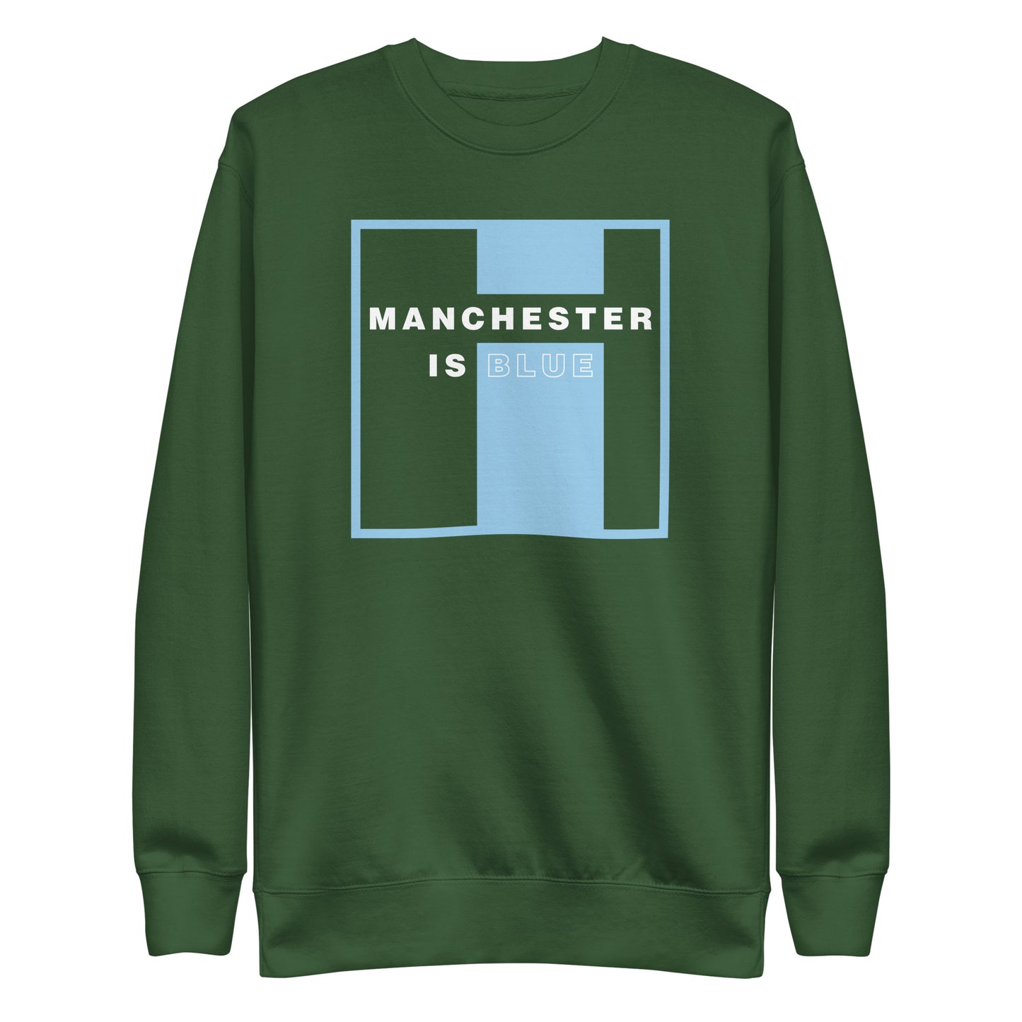 Manchester Is Blue Sweatshirt Manchester City Funny Football Supporter Premium Unisex Sweatshirt