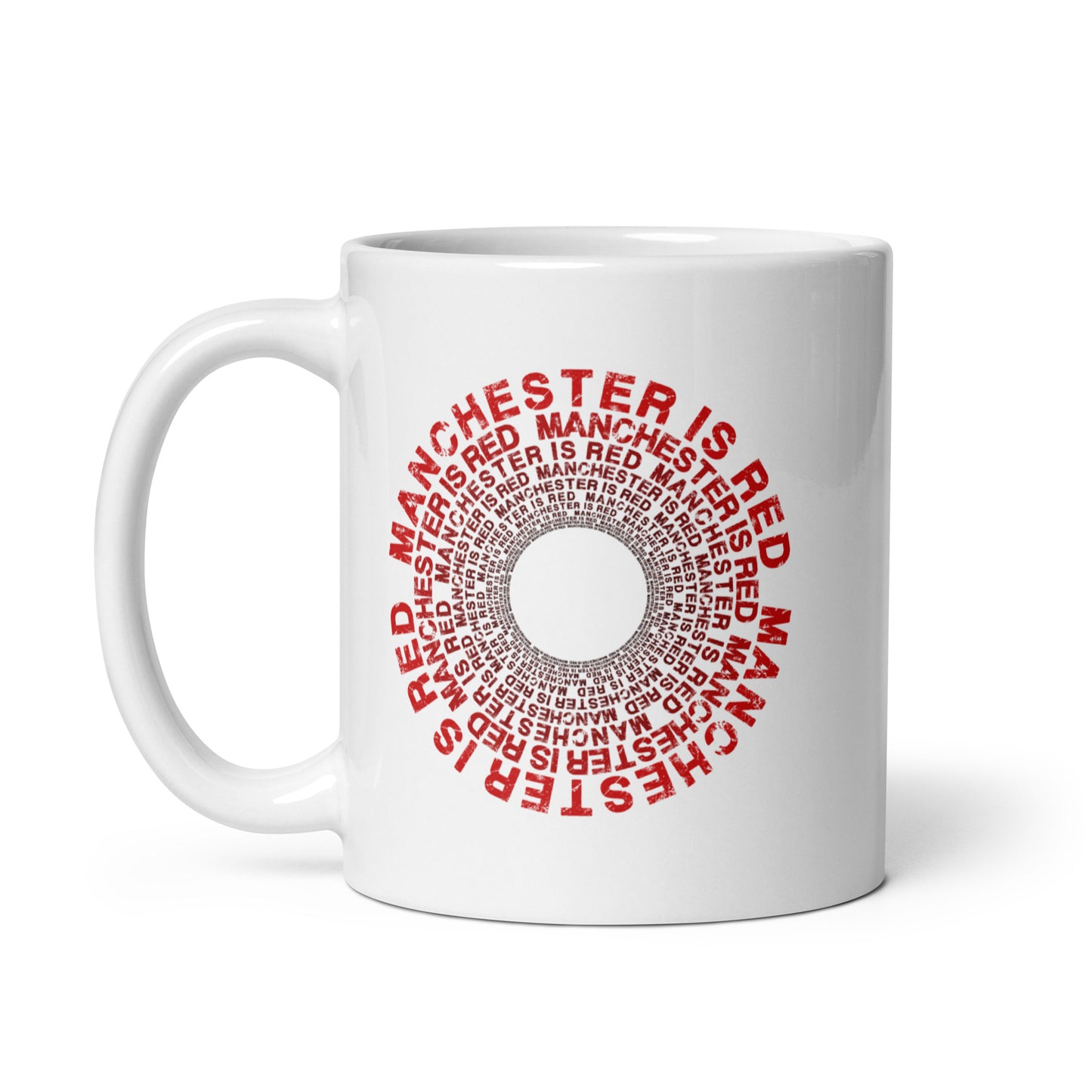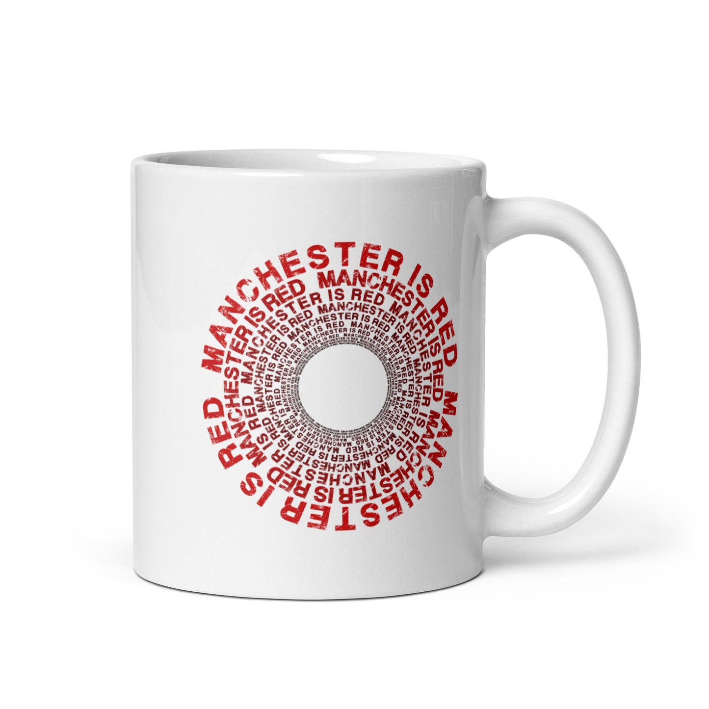 Manchester Is Red Mug United Football Cup Funny Utd Slogan Glossy White Mug