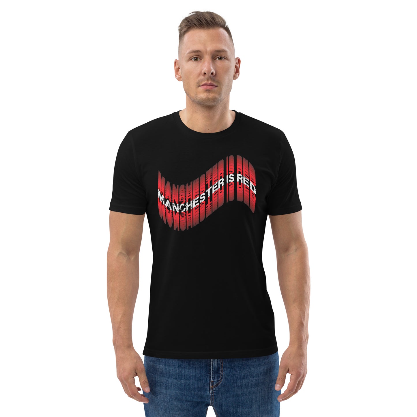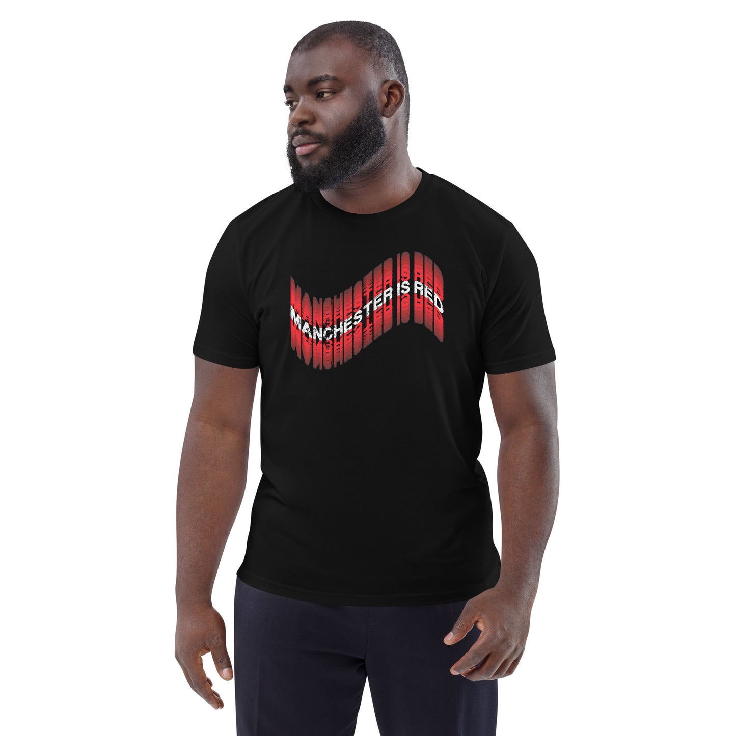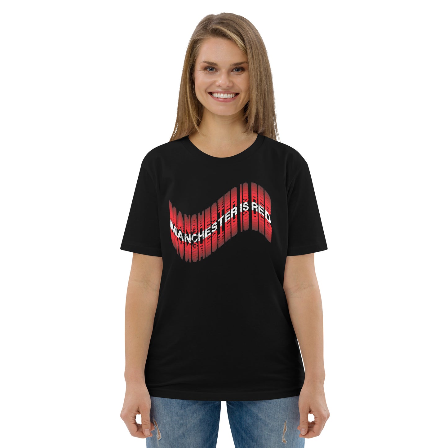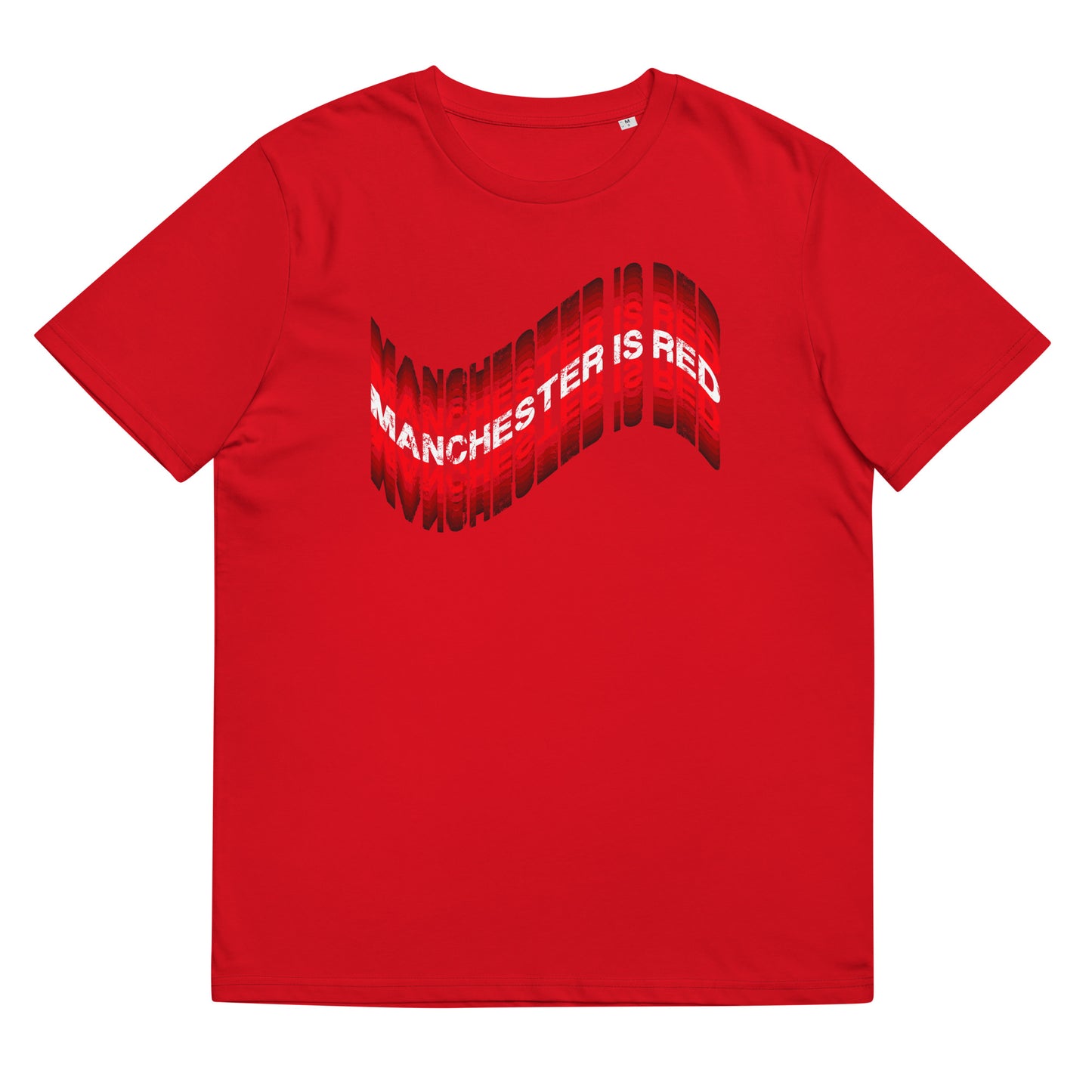 Manchester Is Red Wave TShirt United Football Shirt Funny Utd Slogan Unisex Organic Cotton T-Shirt
