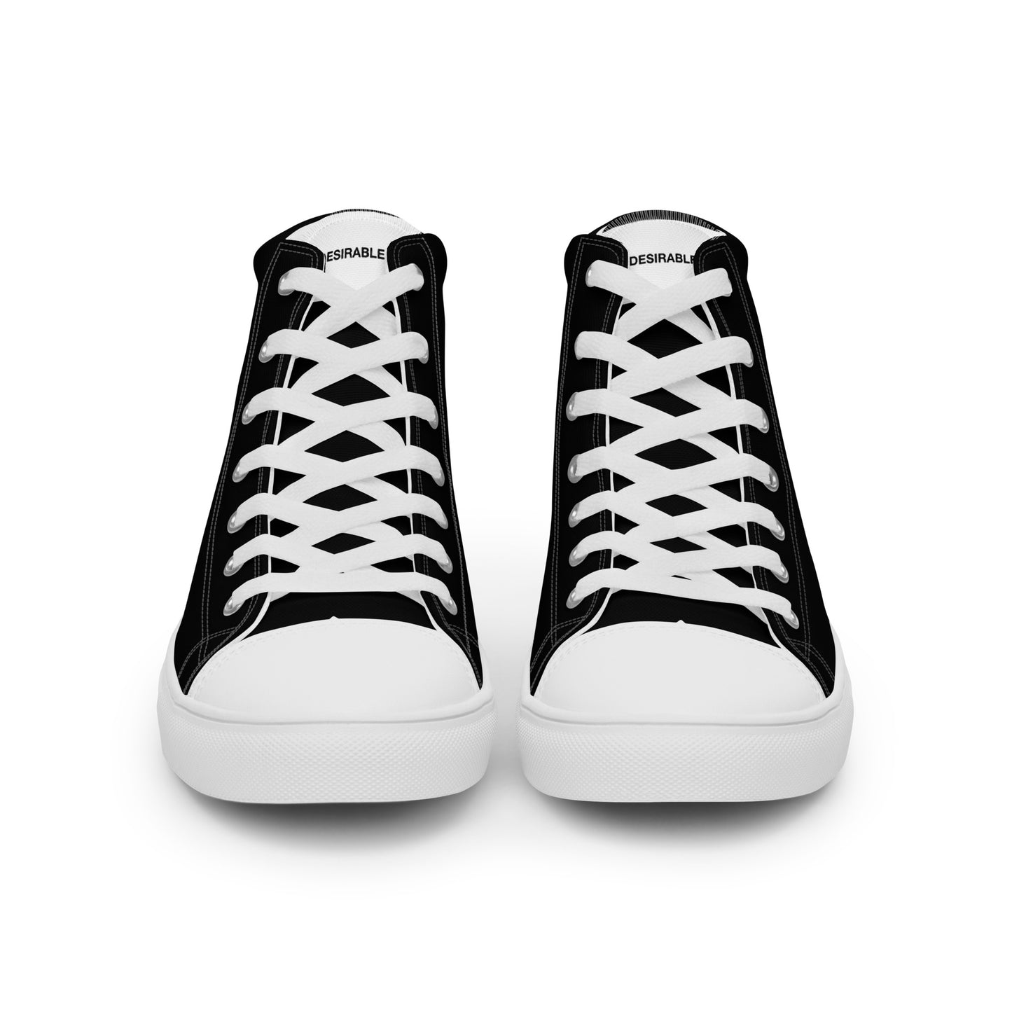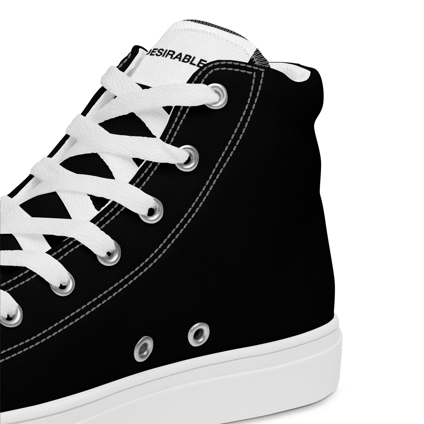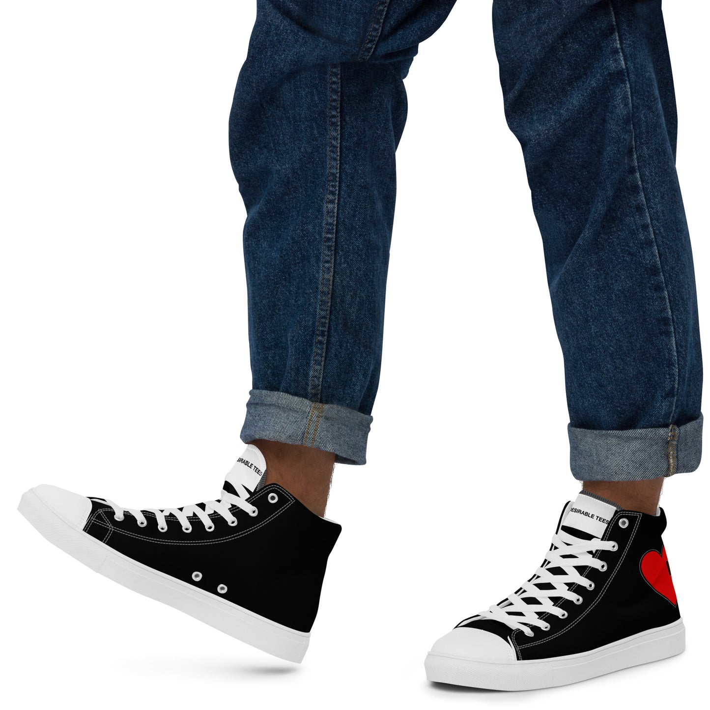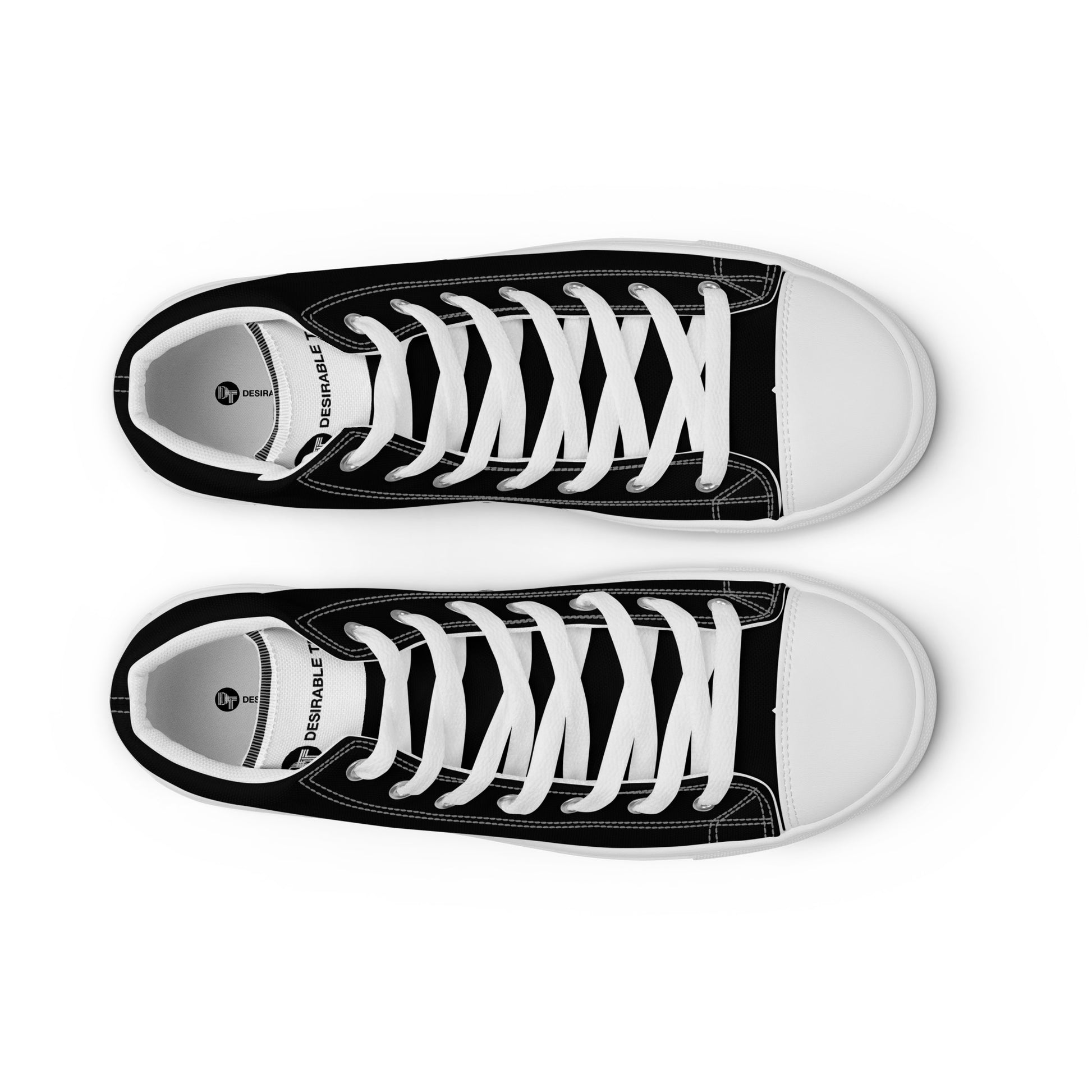 Enrich your wardrobe and step up your game with these handmade black and white men's high top canvas trainers from Desirable Tees that are guaranteed to turn heads.