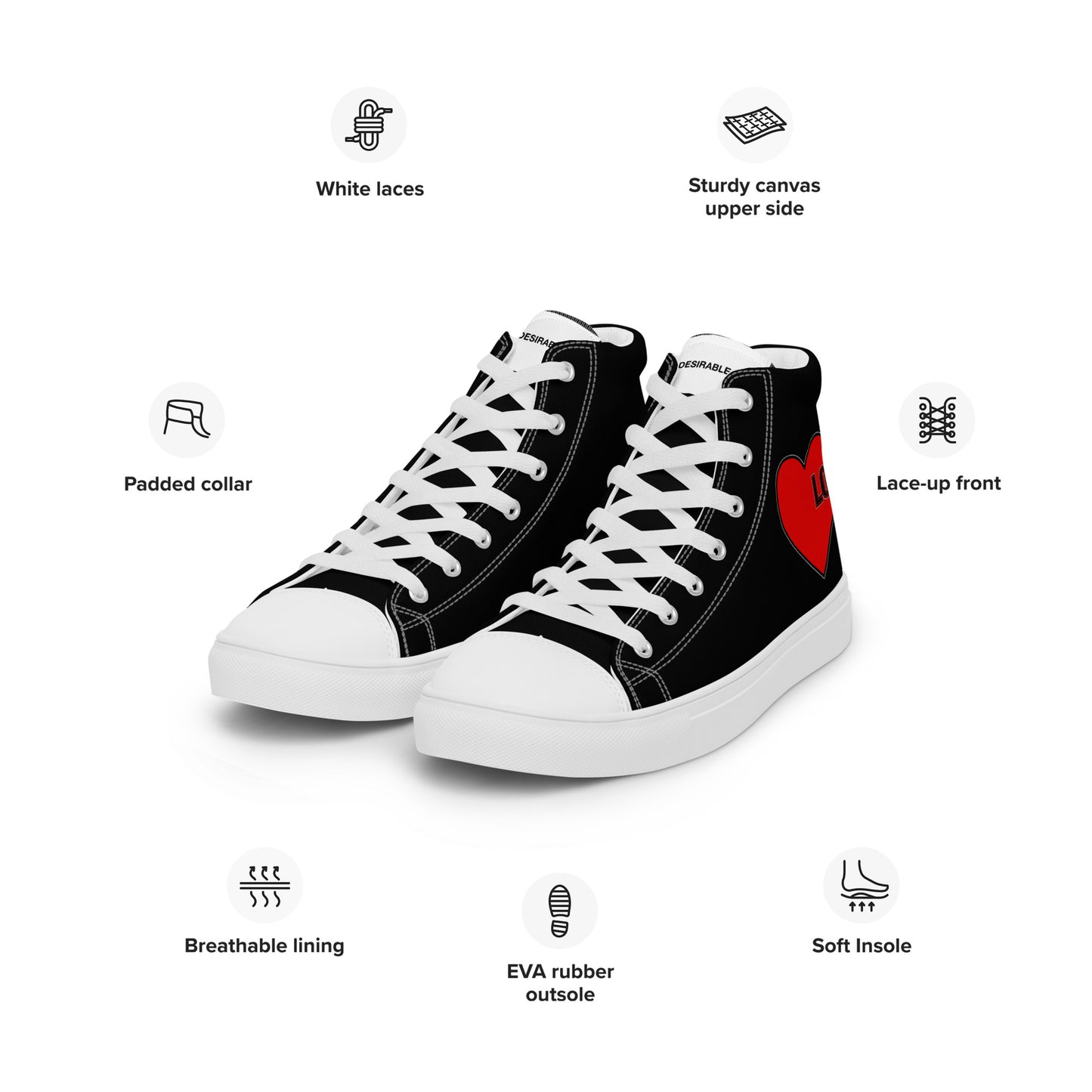 Love Is The Message High Top Trainers Just Love Men’s Hi Top Canvas Shoes