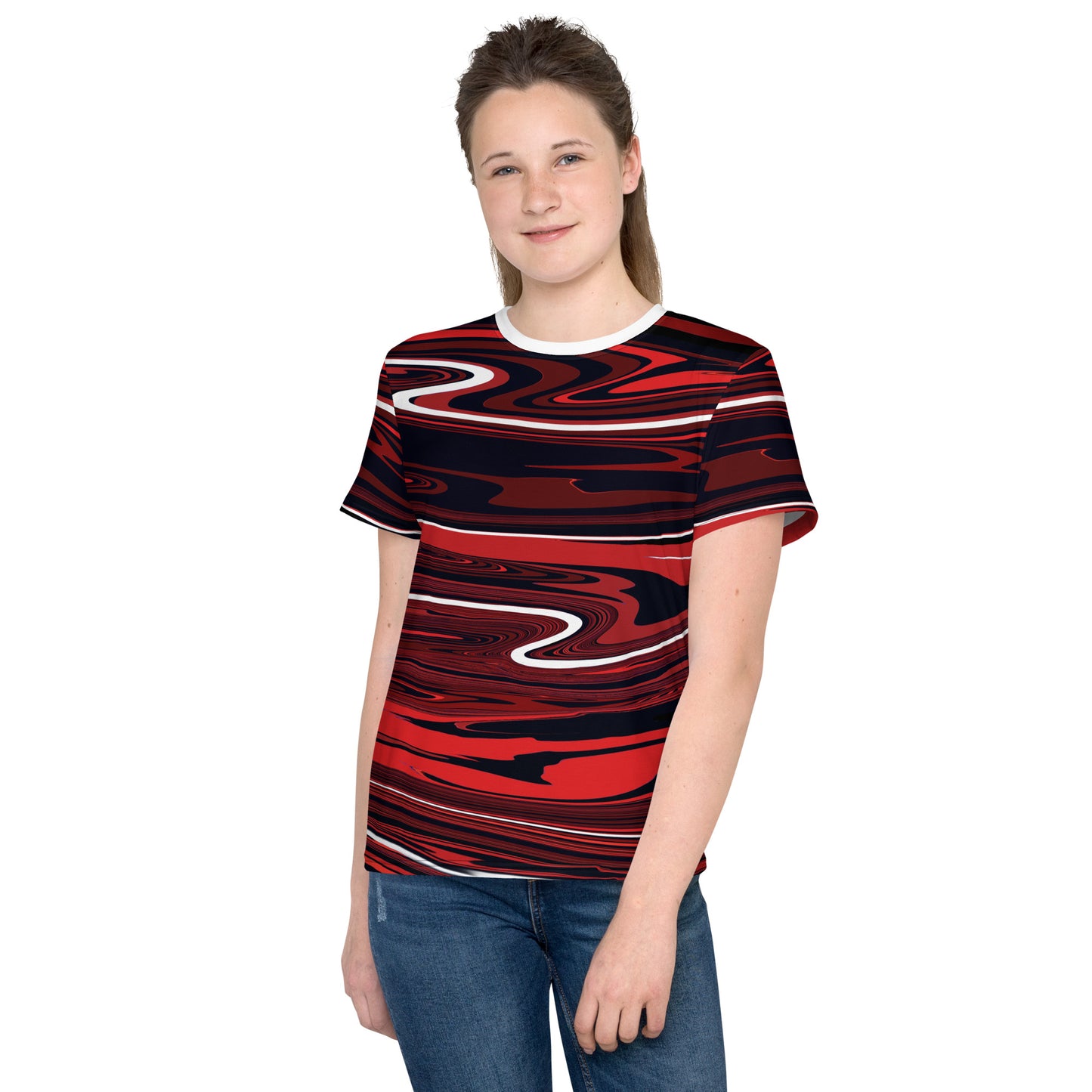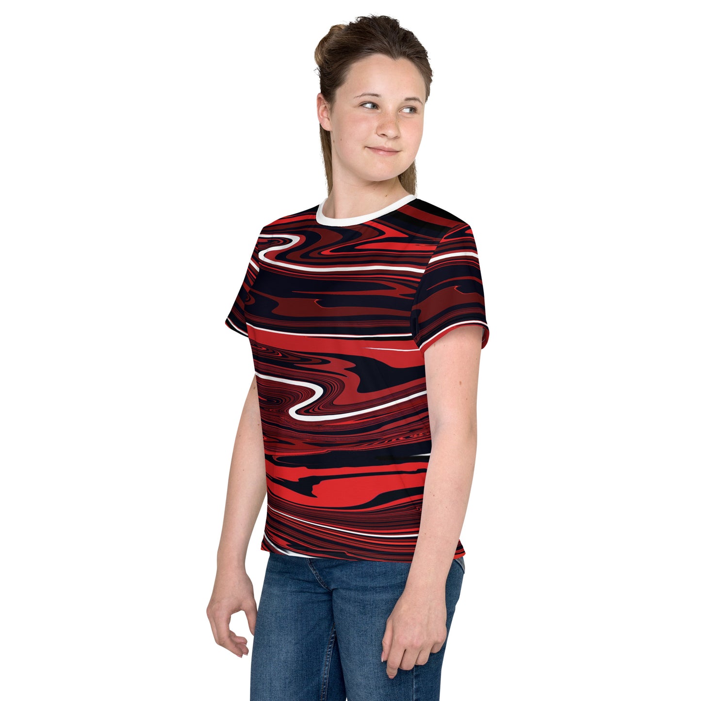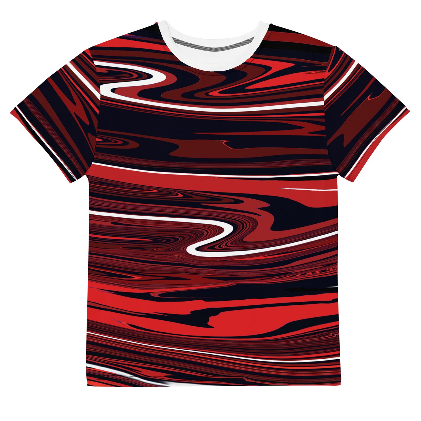 Red Monochromatic Abstract Striped All-Over Print Youth T-Shirt