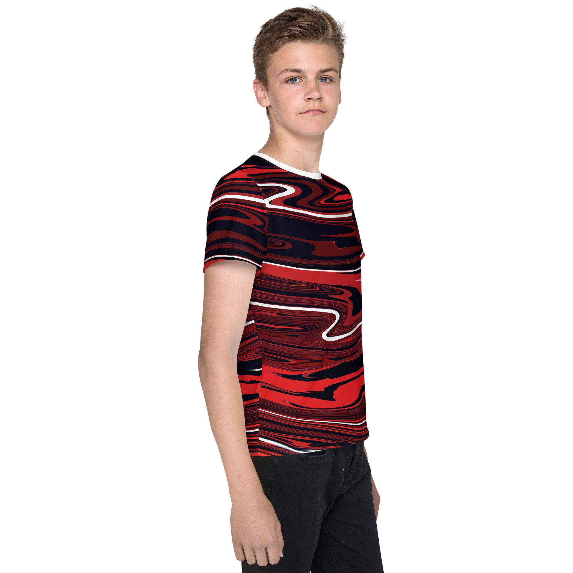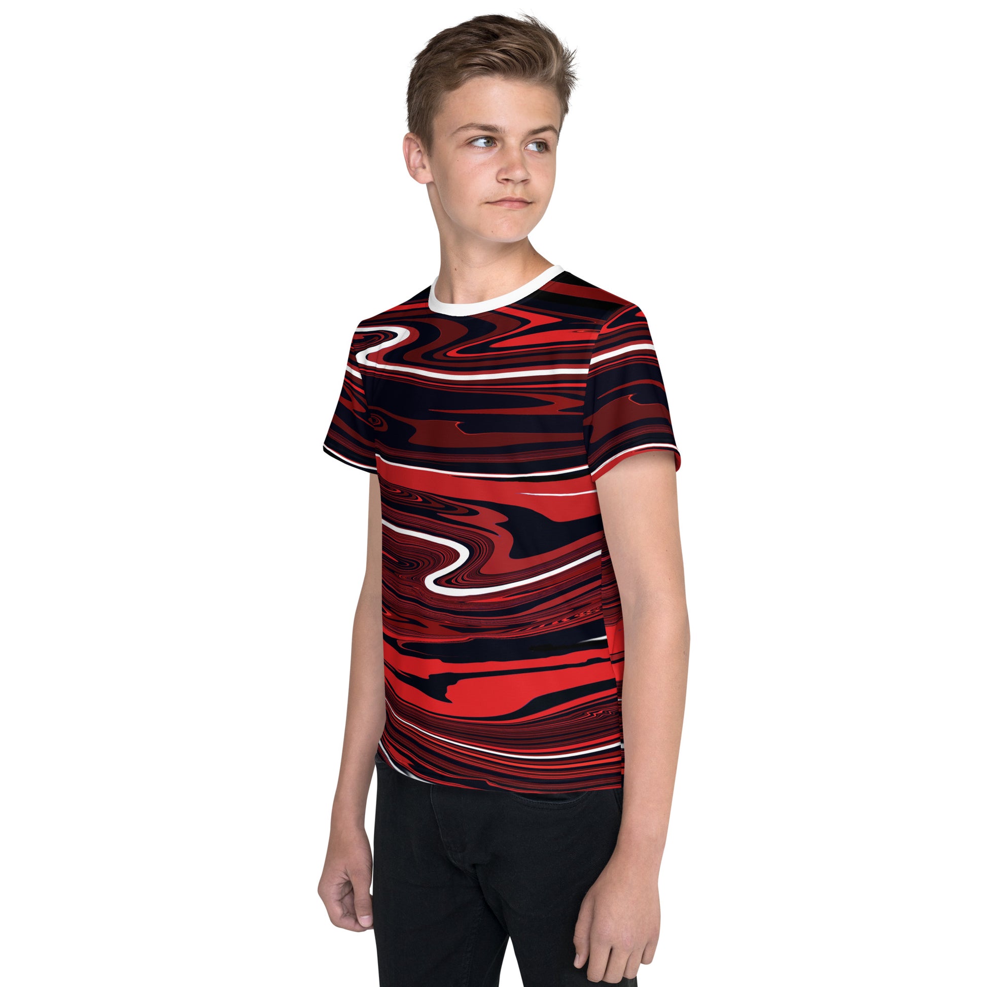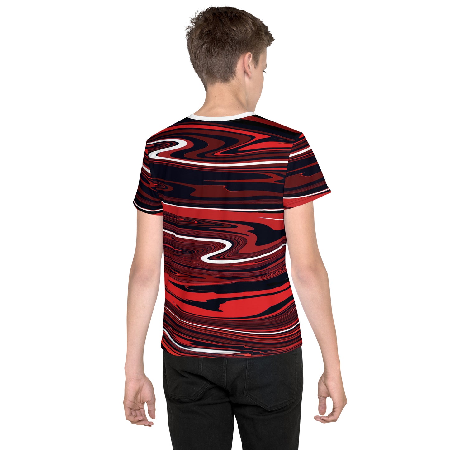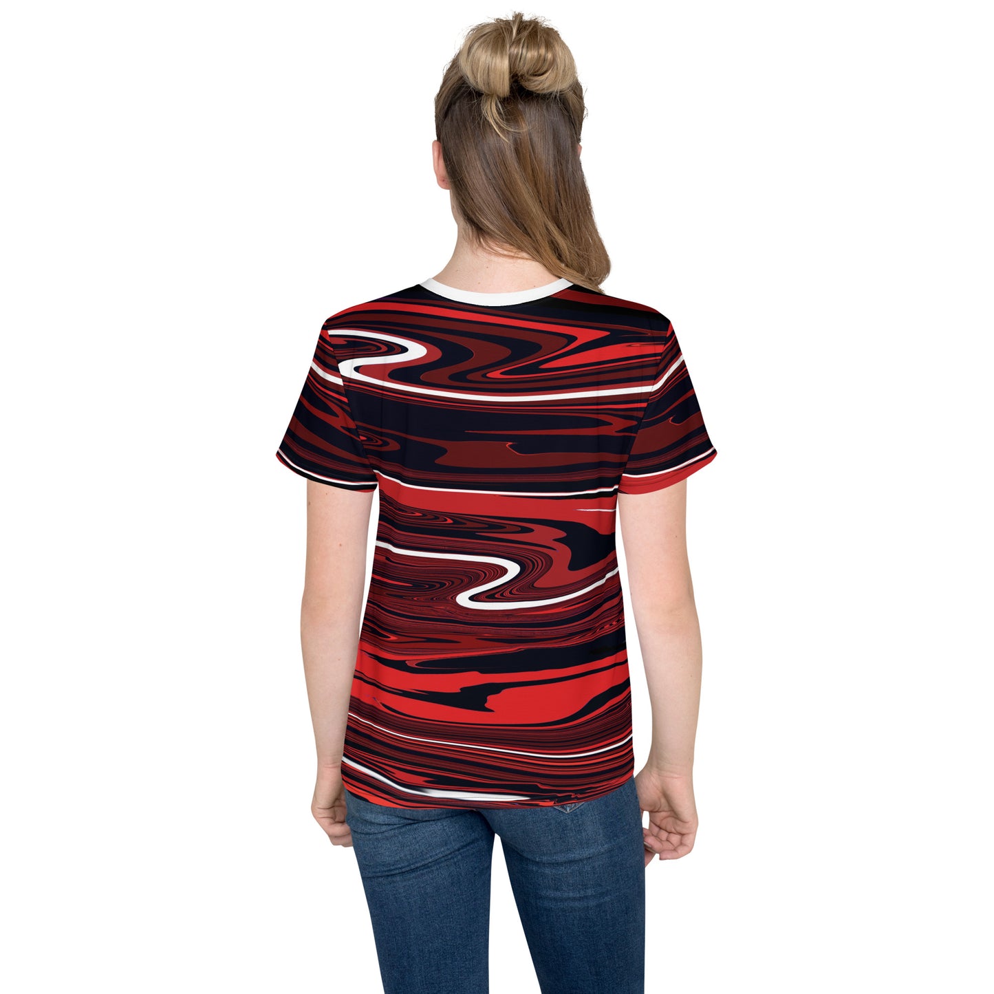 Red Monochromatic Abstract Striped All-Over Print Youth T-Shirt