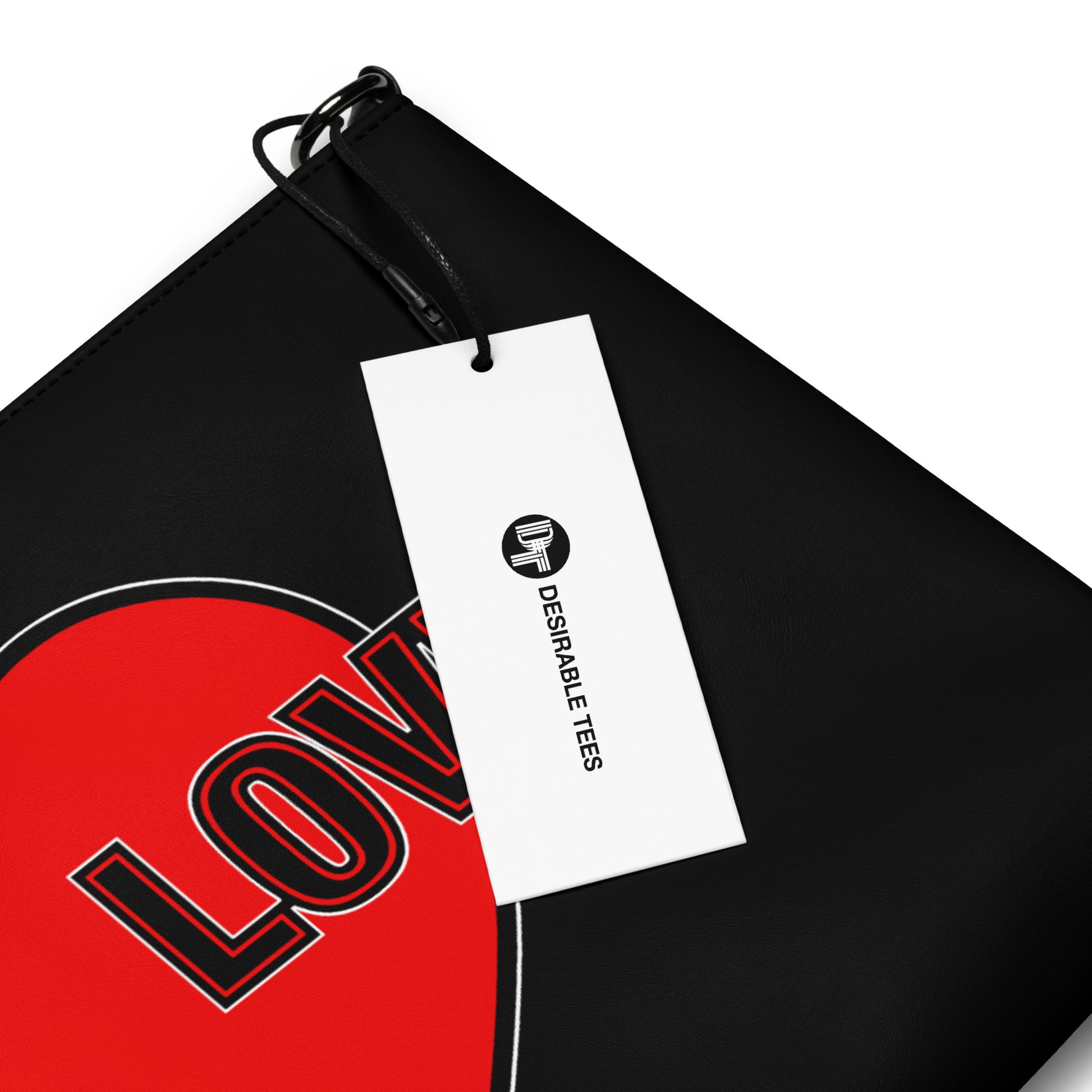 This unisex Valentine's crossbody bag for men and women from Desirable Tees is made from premium faux leather and features a top zip fastening closure, charcoal gray hardware and multiple interior pockets. The design features a simple 'Love' message with a red neon heart and a white on white cutout neon lettering design which takes on the exact colour of the bag, whichever that colour may be.