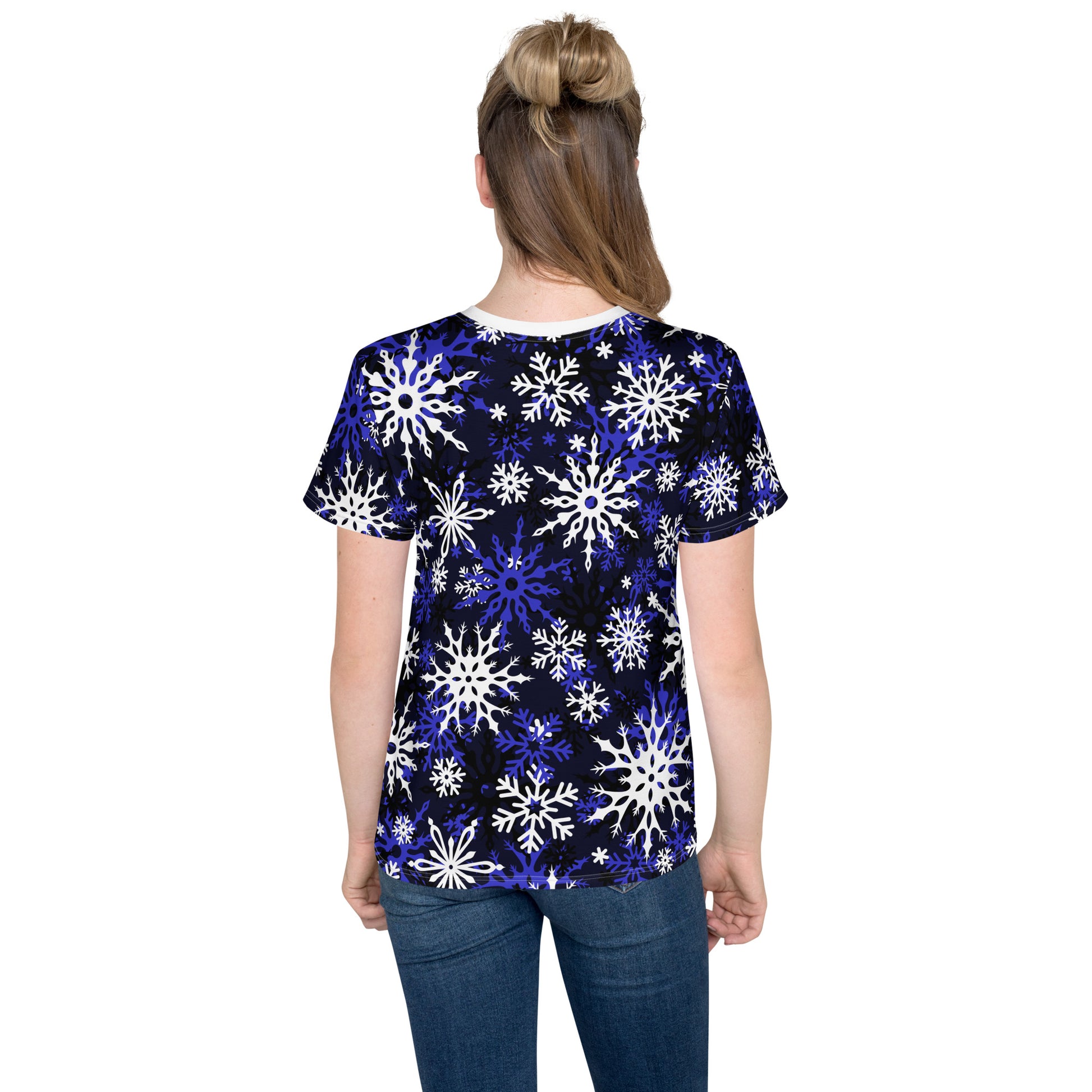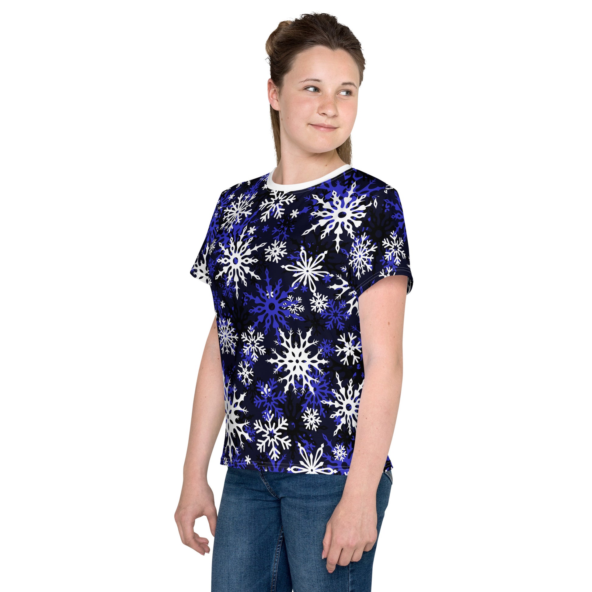 Youth's Christmas TShirt Blue Snowflake Festive Oversized All-Over Print Unisex Kids T-Shirt