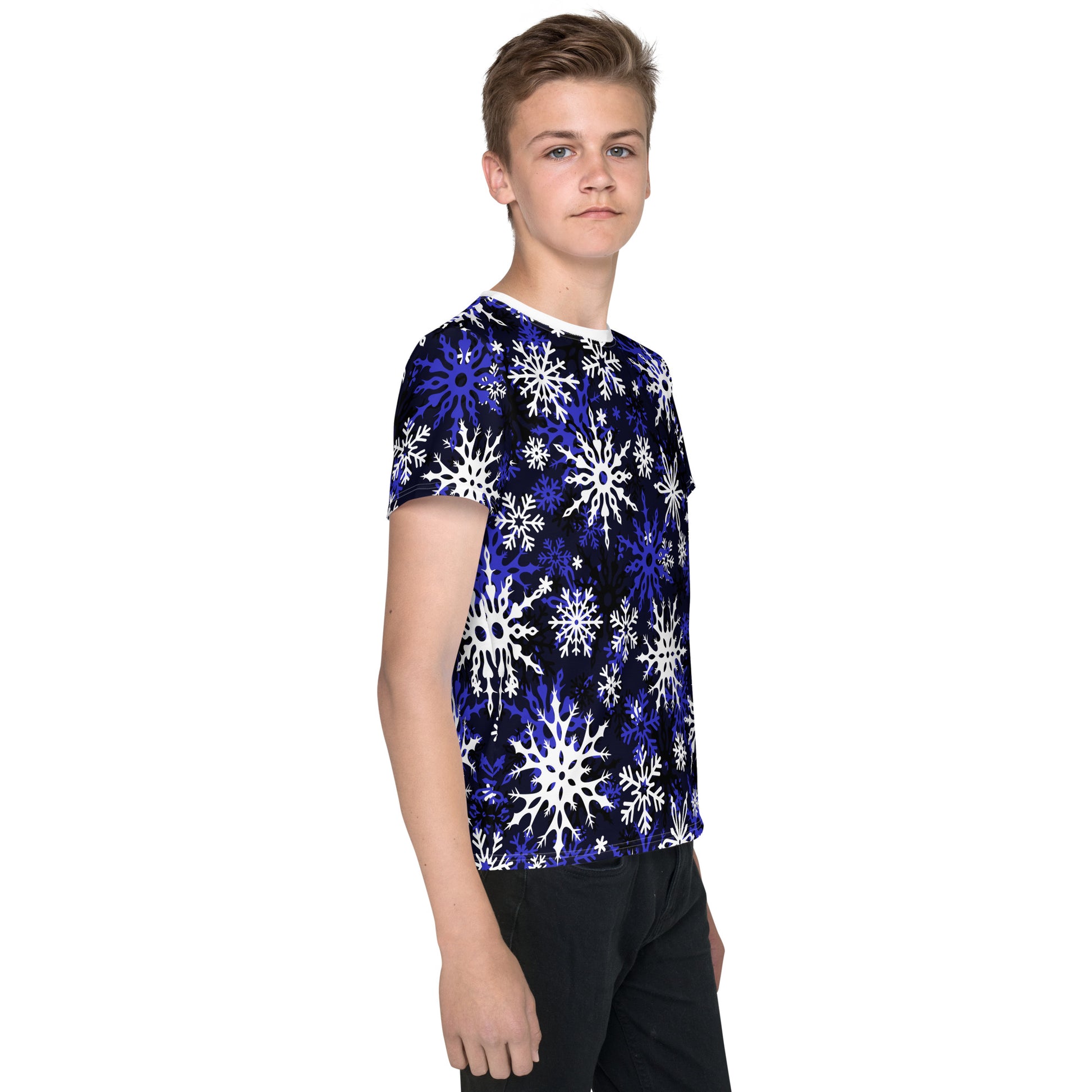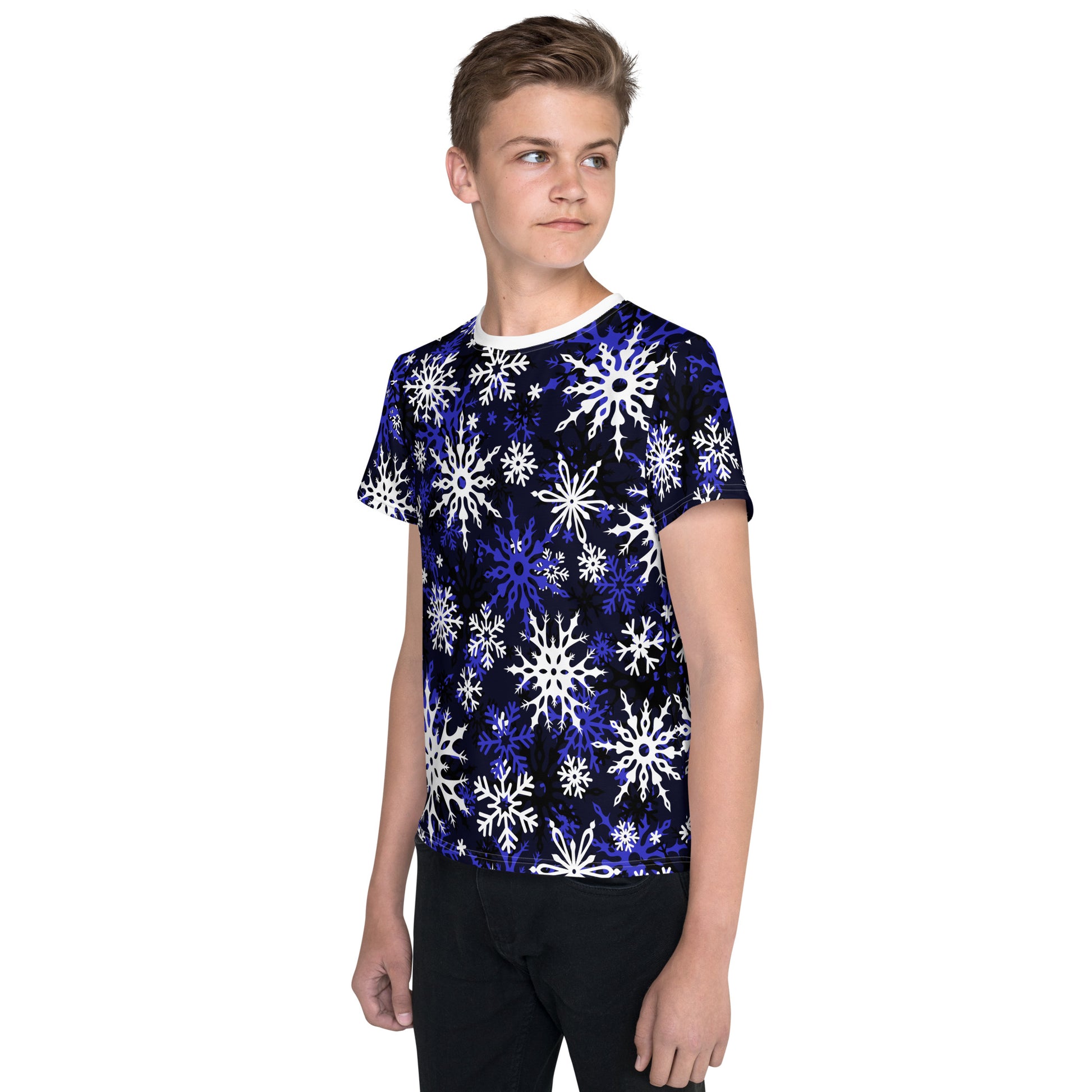This multicoloured, festive and Christmas themed snowflake all-over print youth's t-shirt from Desirable Tees is guaranteed to turn heads and make their friends envious!