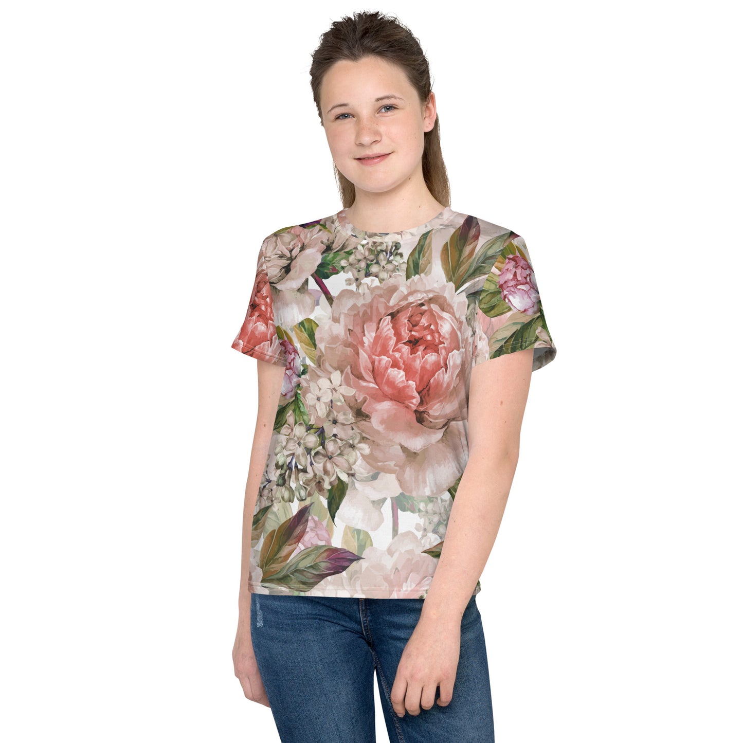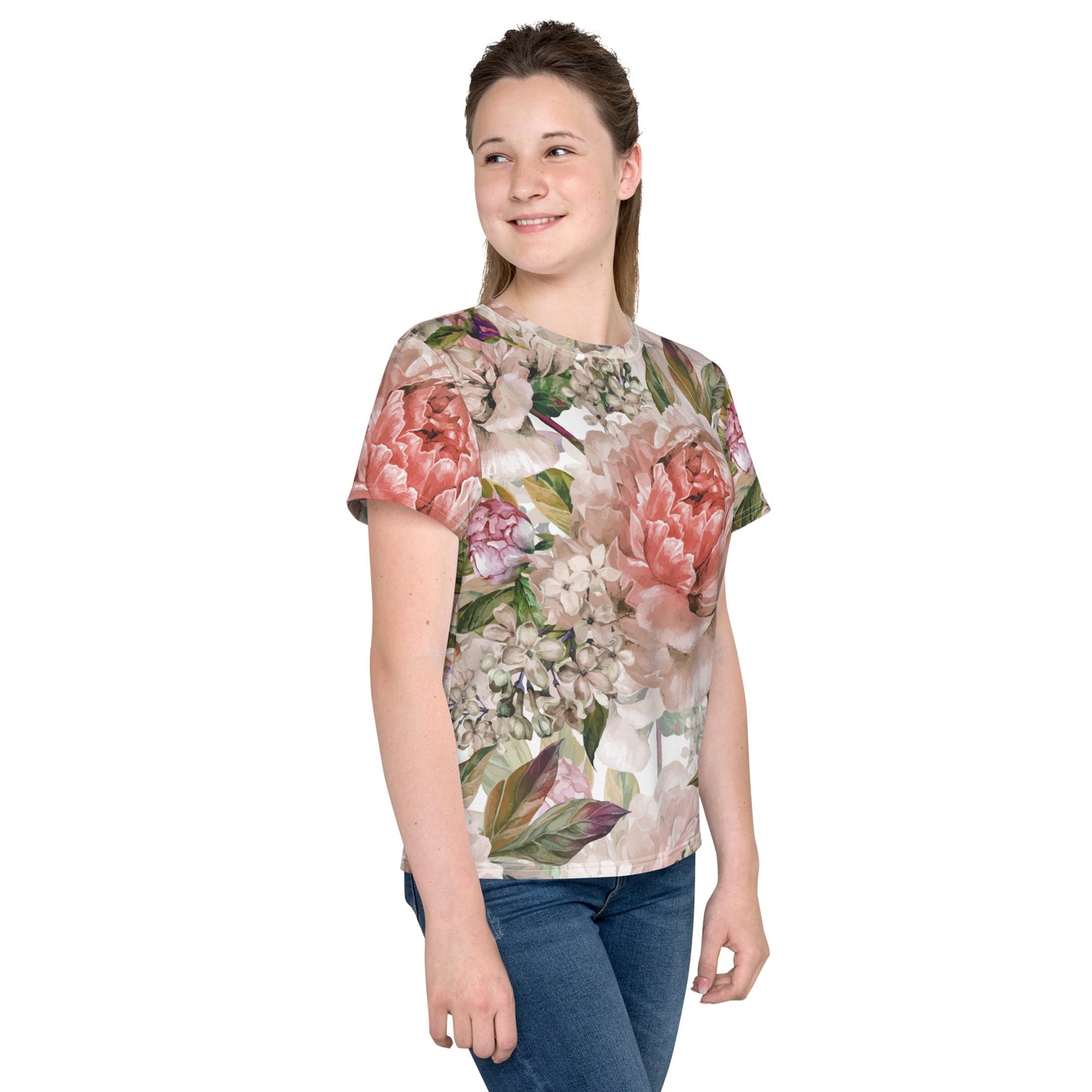 Floral Kid's T-Shirt All-Over Print Youth Crew-Neck T-Shirt